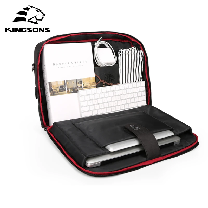 Портфель Kingsons мужской, для ноутбука 15,6 дюйма, Нейлоновый, водонепроницаемый, с USB-портом для зарядки, 15,6