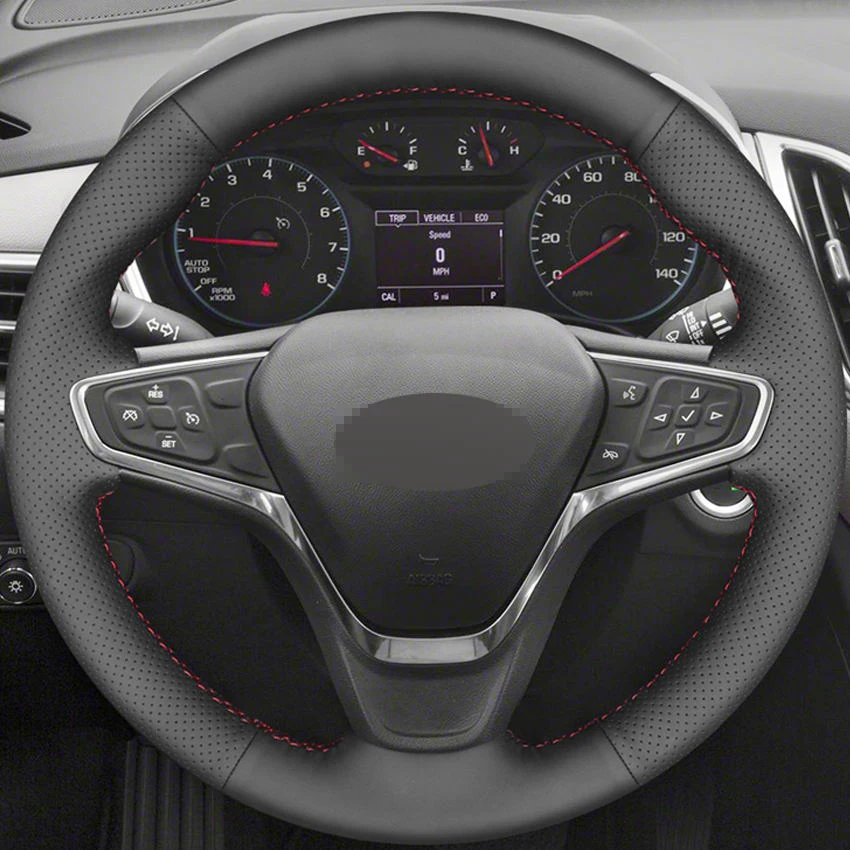 Сшитый вручную черный чехол на руль из натуральной кожи для Chevrol...