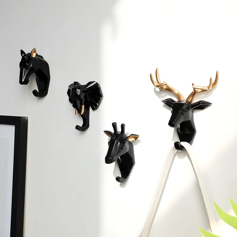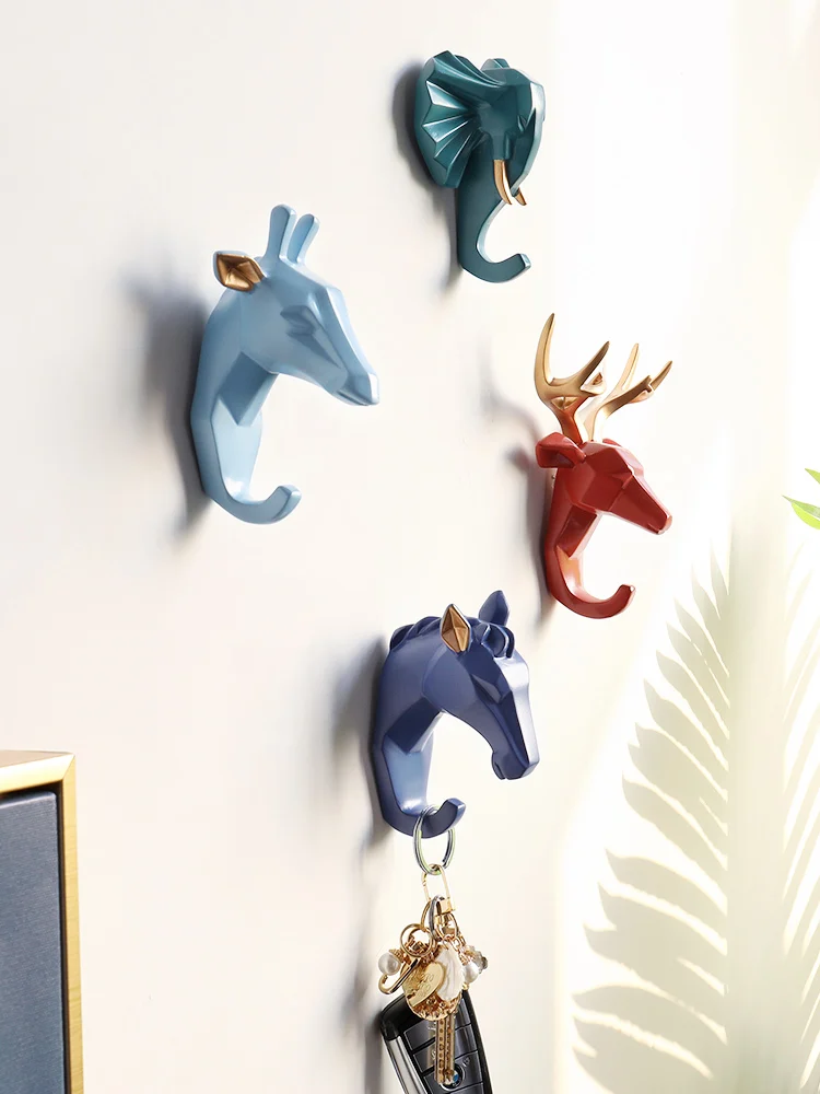 Домашний декор из смолы, настенные крючки в скандинавском стиле с головой животного, держатель для ключей, Настенный декор, крючки для ключей в виде лошади, слона, оленя, вешалка, держатель для сумок