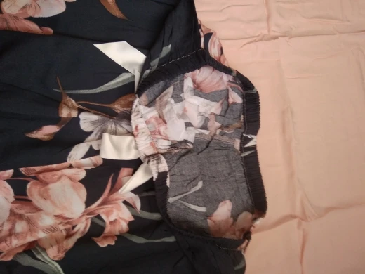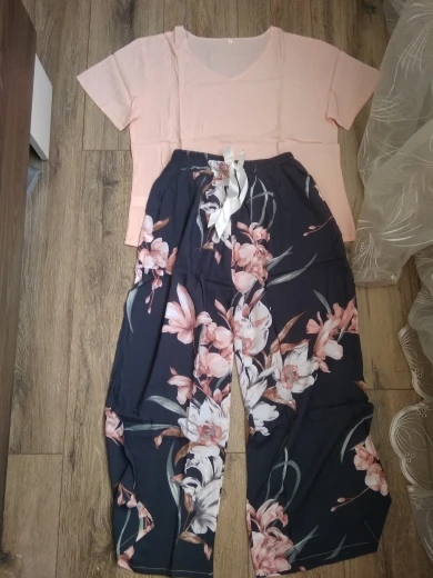 Заказывала 2 пижамы (себе и подруге). Материал вискоза, очень легкий и приятный к телу. На российский 42-44 взяла S. Все подошло, штаны широкие. Доставка 2 недели до Вологодской области, получила в постмате магазина «Пятёрочка». Пижама была запакована в красивый пакет. Продавец сделал подарок - резинку для волос. Очень приятно. Спасибо большое!