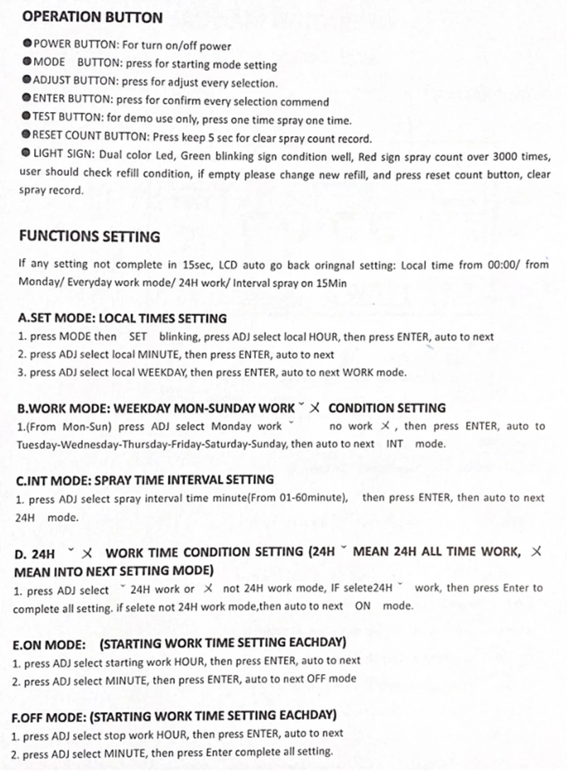 Размер: 83*86*240 мм Материал: АБС-пластик Цвет: белый ЖК-дисплей цифровой ароматизированный машин Размер контура: 83*86*240 мм Функциональные характеристики: 1. Особенности: регулируемый ароматный Изолированный 1-60 видов, который может быть установлен в течение недели день, в который дни не спрей, спрей или каждый день 2. Может автоматически напоминать о низком заряде батареи 3. ЖК-экран может быть установлен, чтобы выключить часы, нормальная работа питания 4. Применение 3 батарейки типа АА щелочные батареи в общей сложности 3,0 вольт может использоваться Применение d, чтобы добавить больше, чем восемь банок, 3000 консервных банок каждого аромат можно распылить про 5. Быстрый снос головки 6. Будет выбран как рабочий день или нерабочий день, соответственно, с понедельника по воскресенье. 7. Может свободно устанавливать машину каждый день, открывать и закрывать рабочие часы 8. Регулируемая Интервальная настройка времени распыления 9. Может автоматически записывать и отображать количество раз, записанных и отображаемых на экране Упаковка включает в себя: 1 X ЖК-дисплей машина 1 х Пустая бутылка 1 X Инструкция на английском языке Примечание: светильник и различные дисплеи могут привести к тому, что цвет товара на картинке немного отличается от реального. Допускается погрешность в измерениях +/- 1-3 см.