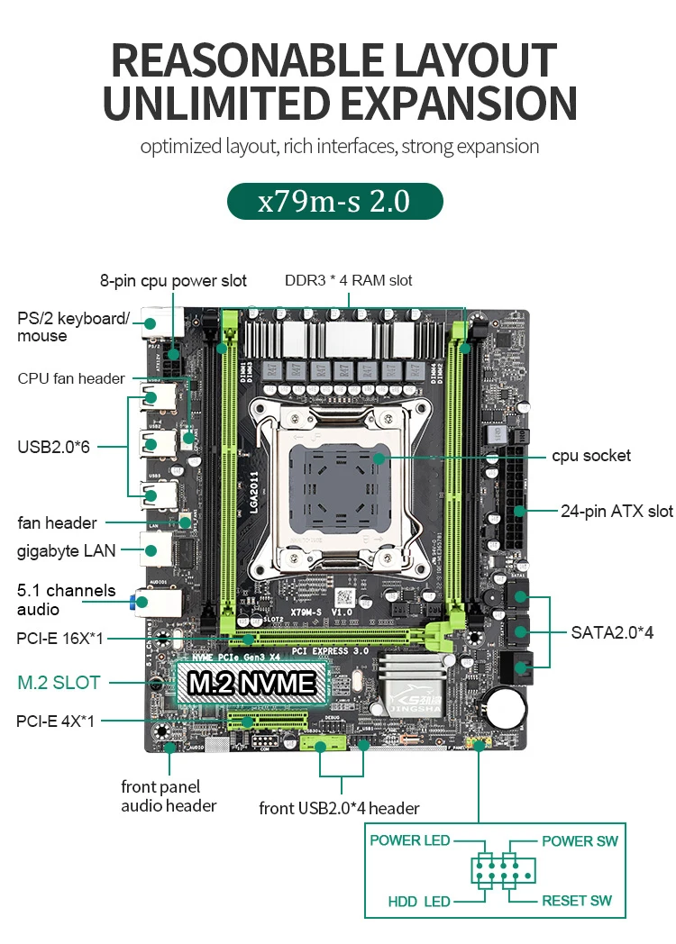 Материнская плата X79 M-S 2,0 LGA2011 USB2.0 PCI-E NVME M.2 SSD под...