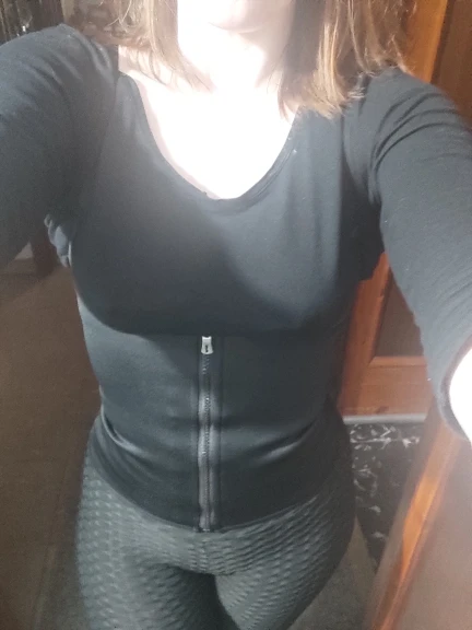 Не прибывает на бедрах, поэтому вакуум переливается в нижней части. Также отсутствует эластичность, через день она растягивается. Хорошо, я получил размер выше, но если бы я получил размер ниже или мой, он бы сделал укороченный топ! Также не ощущается эффект сауны