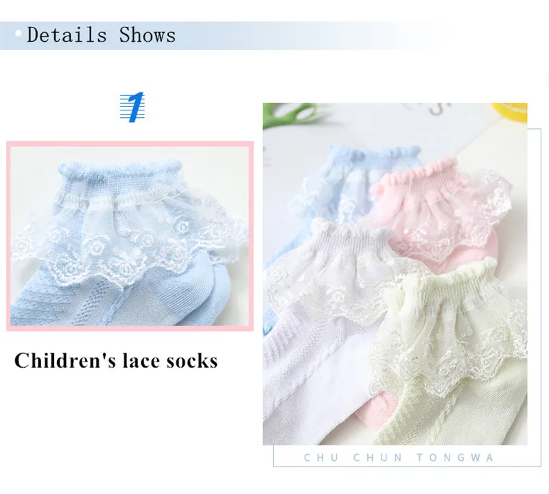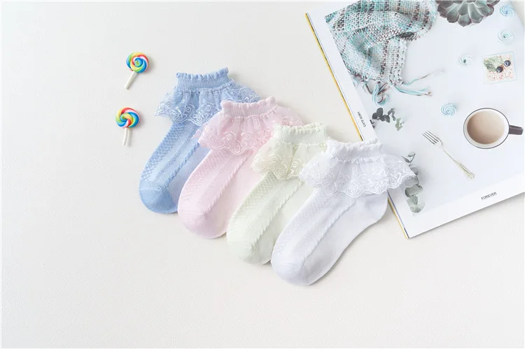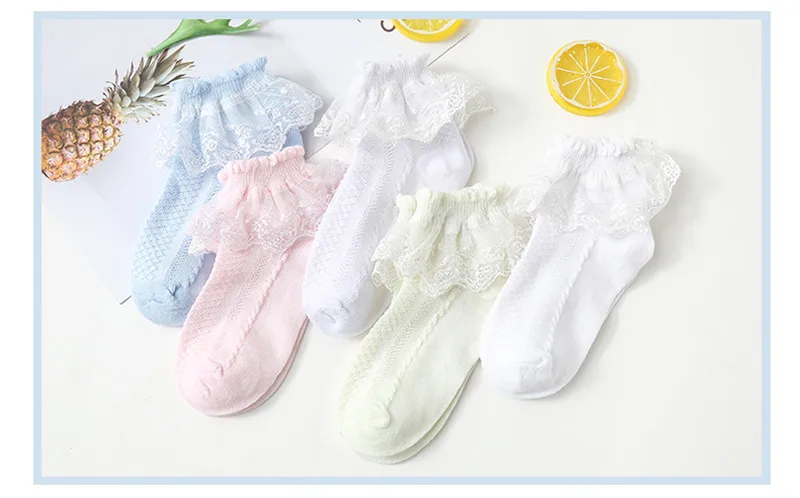 5 парлот, носки для девочек летние тонкие хлопковые носки для малышей модные эластичные белые кружевные детские носки принцессы с цветами