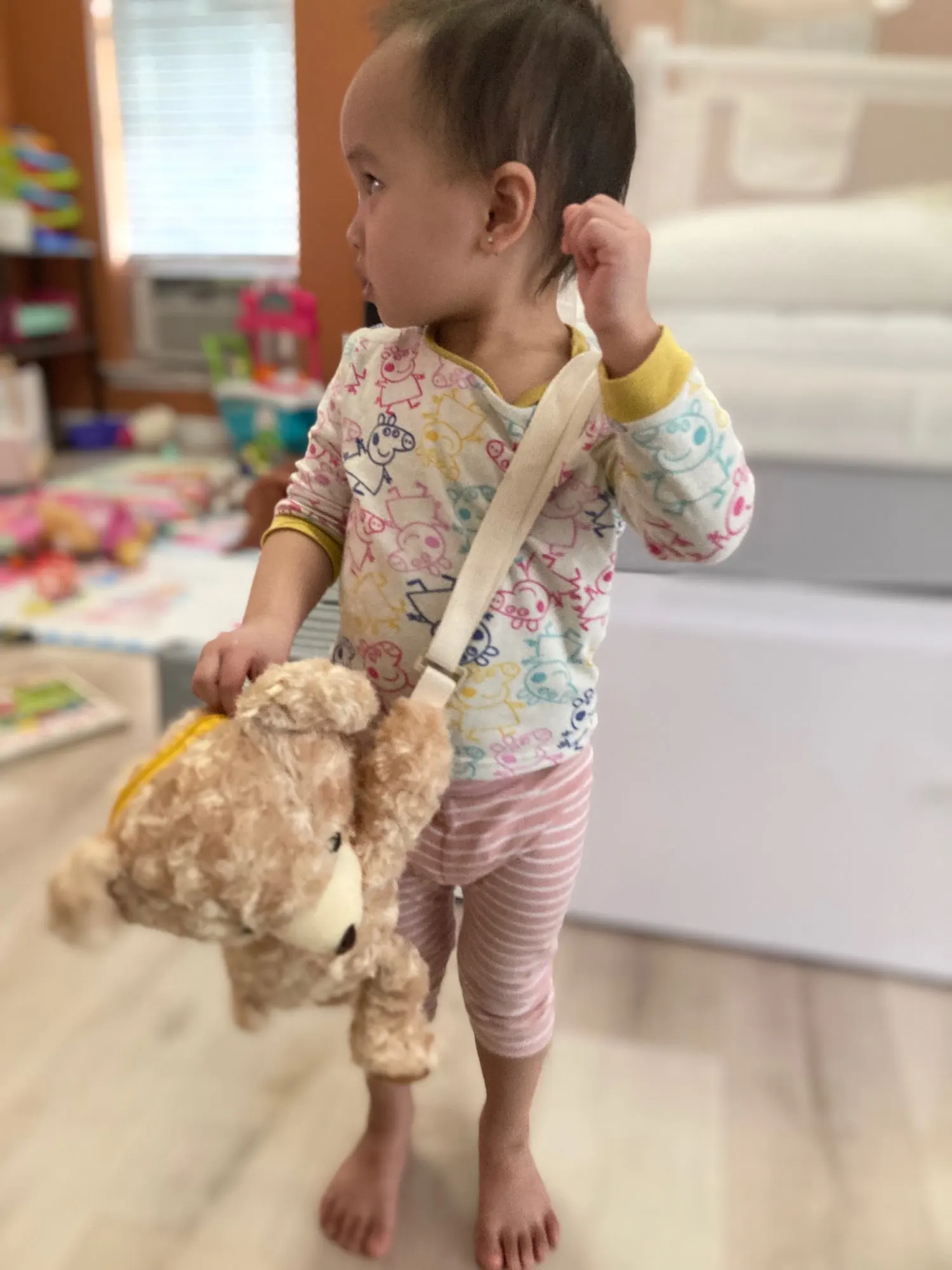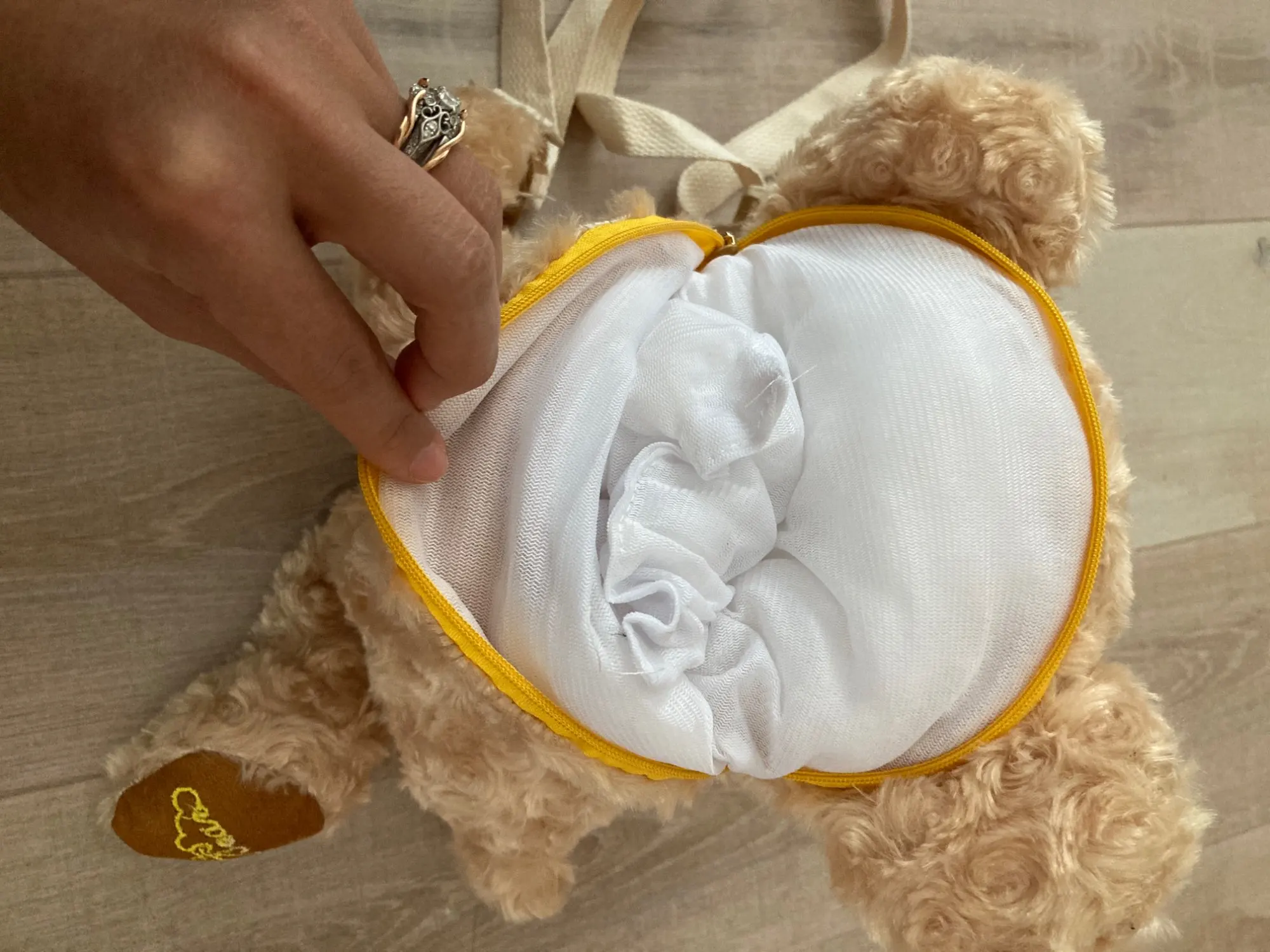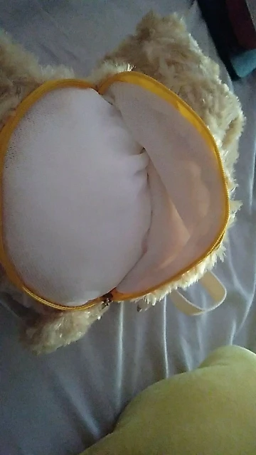 It’s literally so cute that I started crying when I tried it on. I’m definitely going to try removing some stuffing like another reviewer did. His head is a tad too big and the pocket is quite tight.