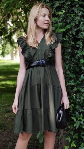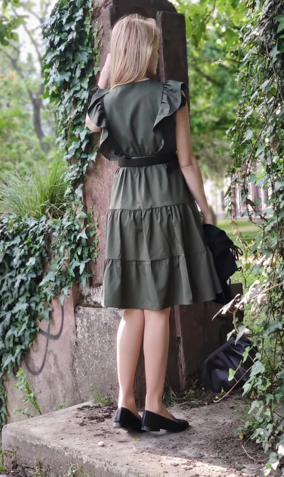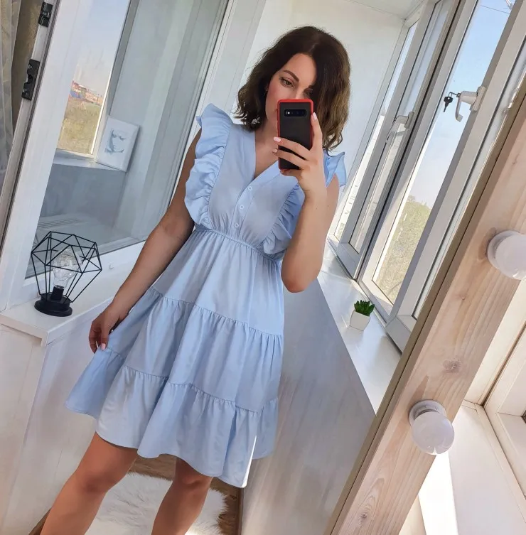 Женское платье с высокой талией и оборками, однотонное платье во фр...