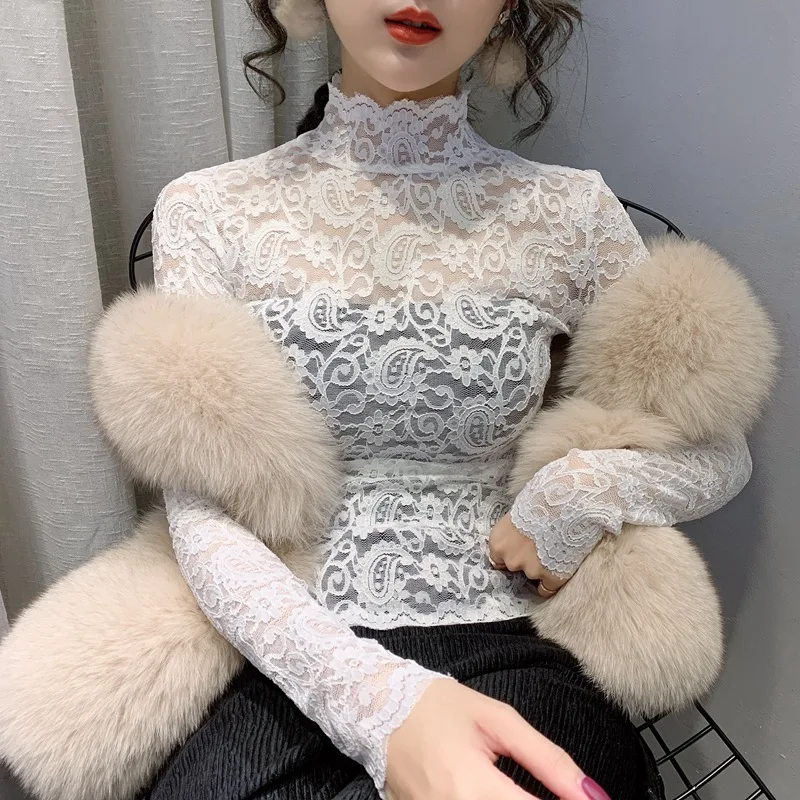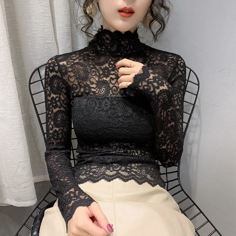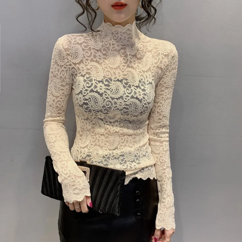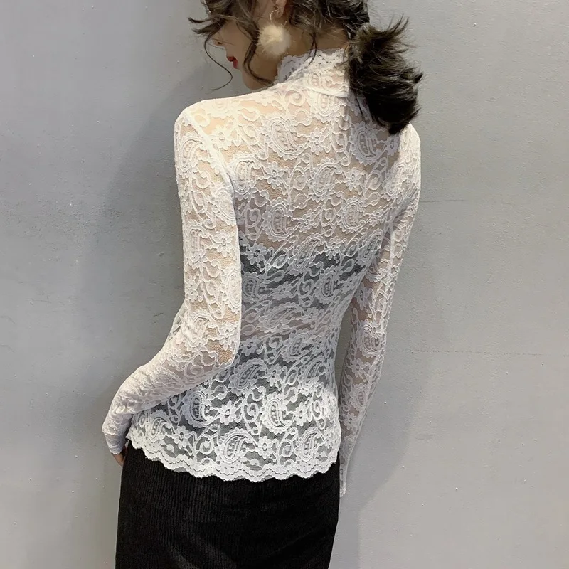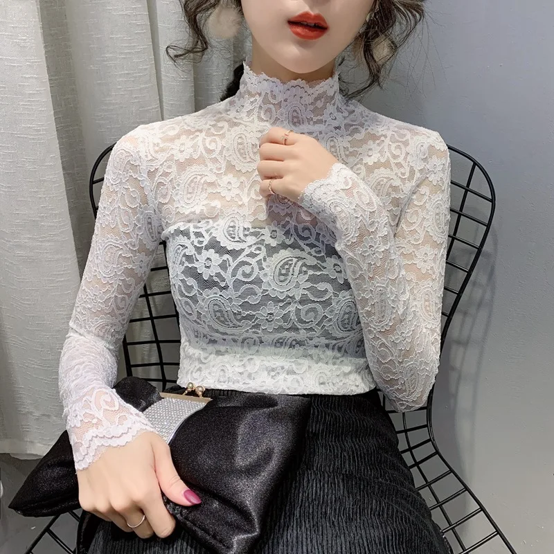 Женская кружевная блузка, элегантная прозрачная летняя блузка белого цвета с длинным рукавом, 2020