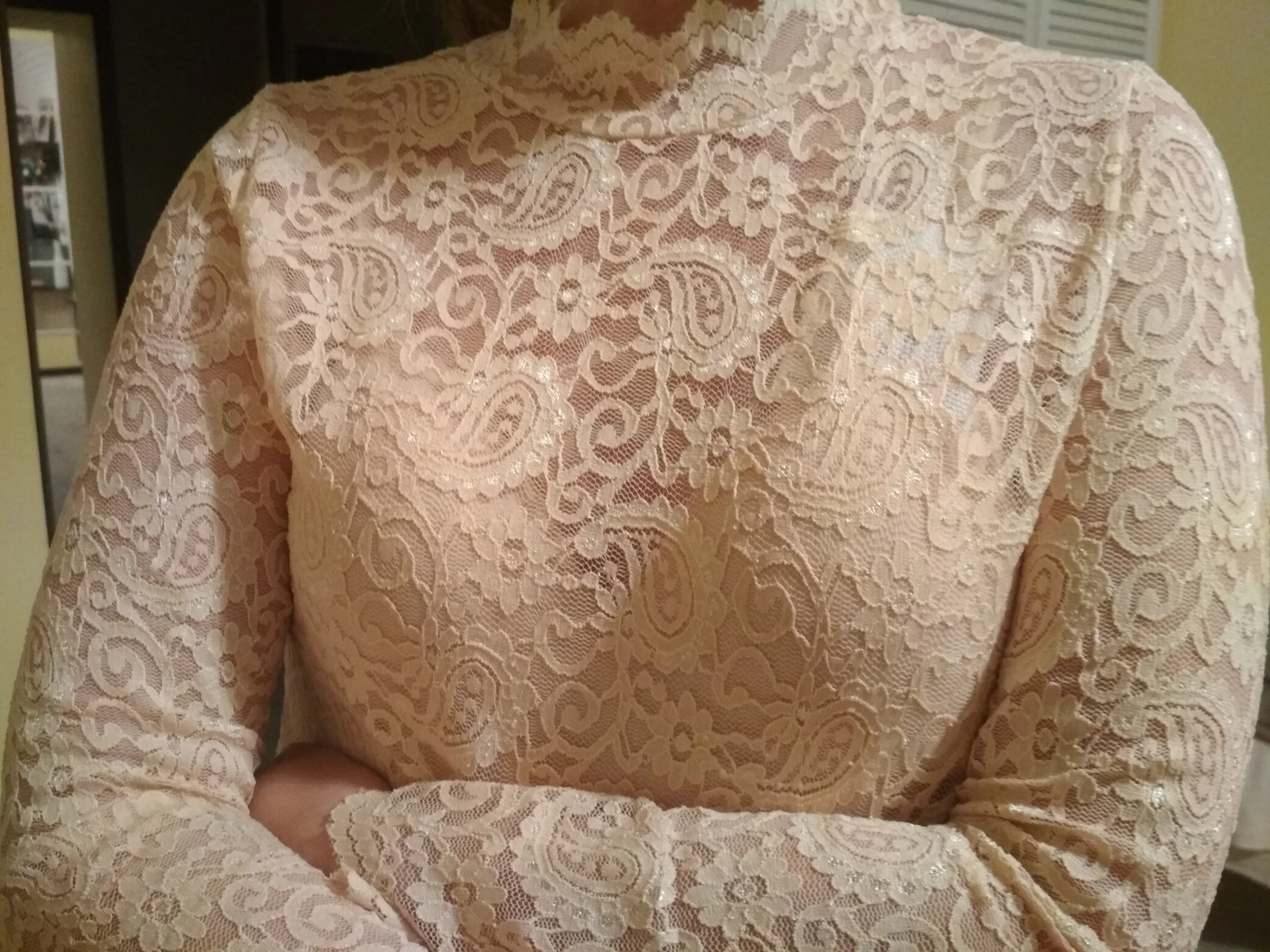 Водолазка полностью соответствует фото и описанию продавца .Материал водолазки хороший,,не хлипкий ,кружево с эластаном.На Российский 46 размер ,взяла XXL,село свободненько,.Брала с купоном за 488 руб.Доставка в Дагестан заняло месяц.Рекомендую к покупке!