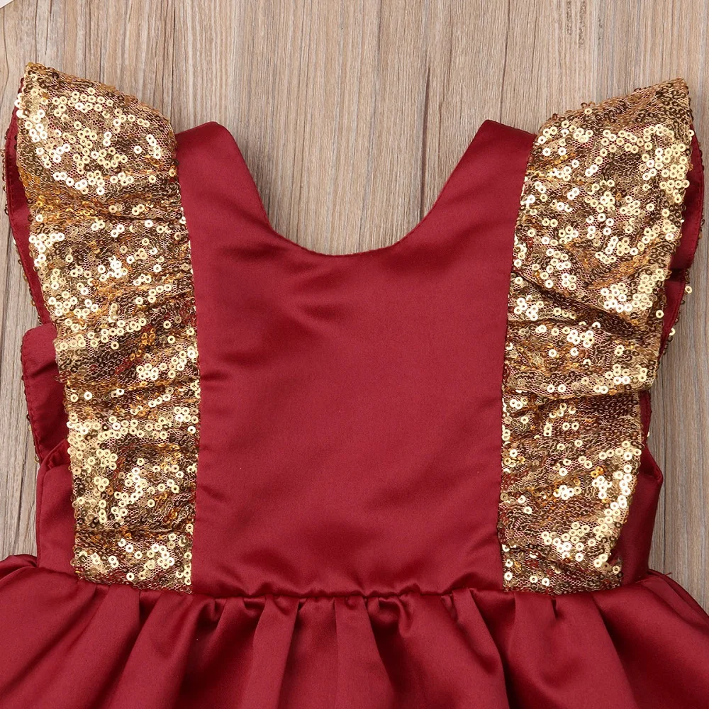 Рождественское платье для маленьких девочек бант с пайетками, плать...