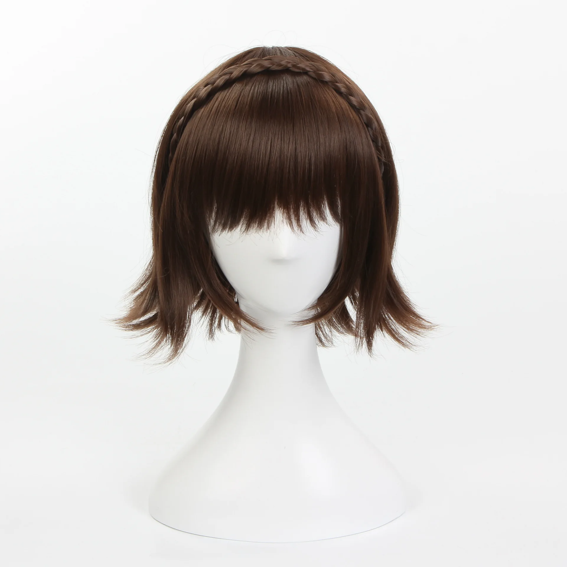 Парик для косплея Persona 5 makoto niijima, смешанные парики из коричневых волос, 31 см, с тесьмой и шапочкой, парик для Хэллоуина, вечеринки