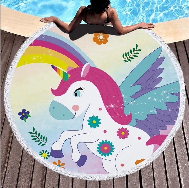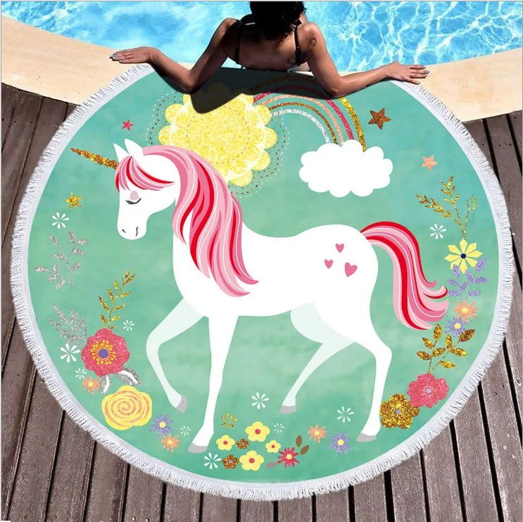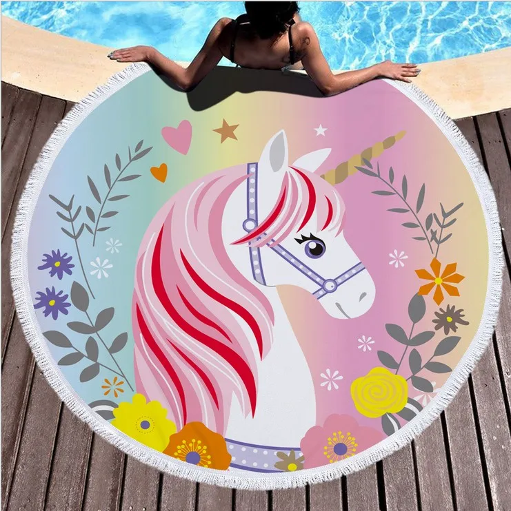 Круглое детское одеяло с мультяшным единорогом, пляжное полотенце в стиле бохо с кисточками, плотная махровая одежда, коврик для пикника, йоги, путешествий