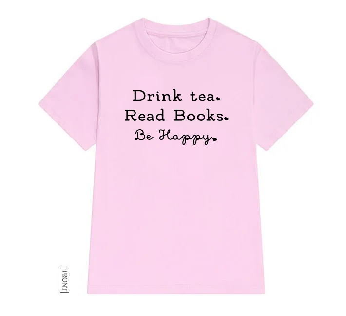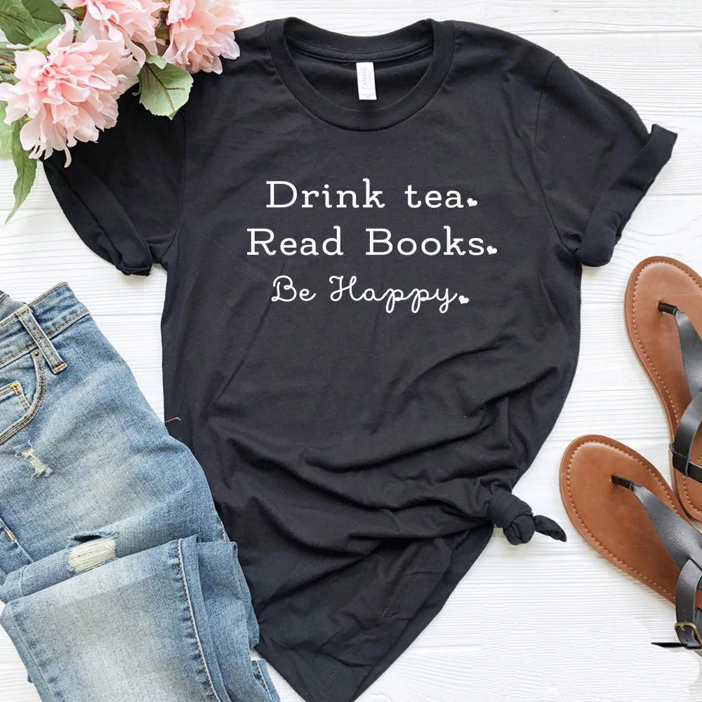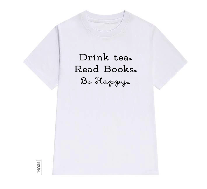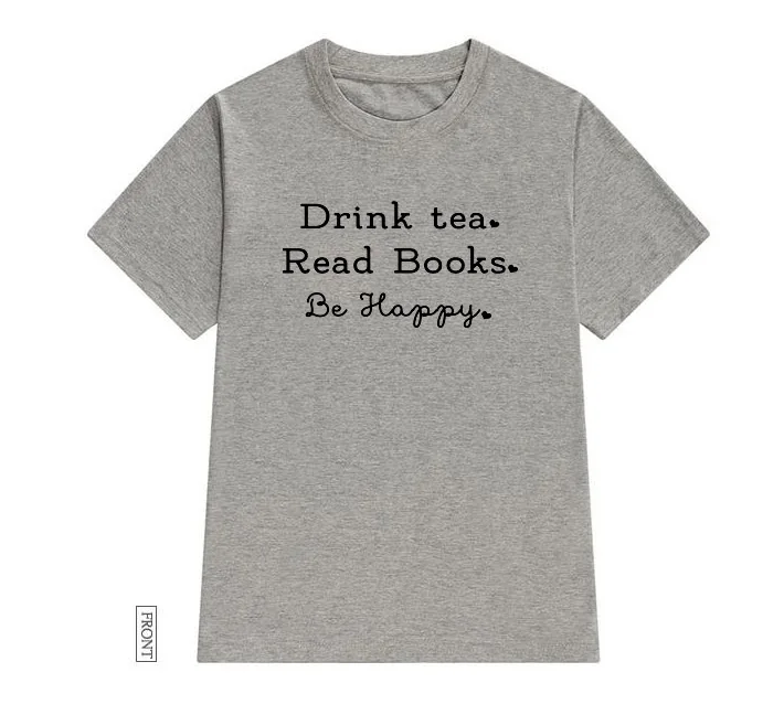 Пейте чай читать книги Ползунки с надписью Happy Camper футболка с принтом с короткими рукавами и круглым вырезом, Свободная Женская футболка женская модные футболки