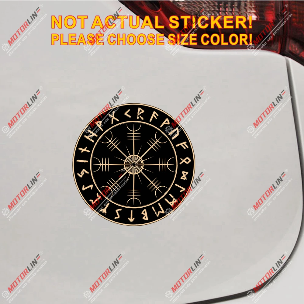 Наклейка Helm Of Awe Vegvisir Viking Compass Rune Gold, Светоотражающая наклейка с глянцевым размером