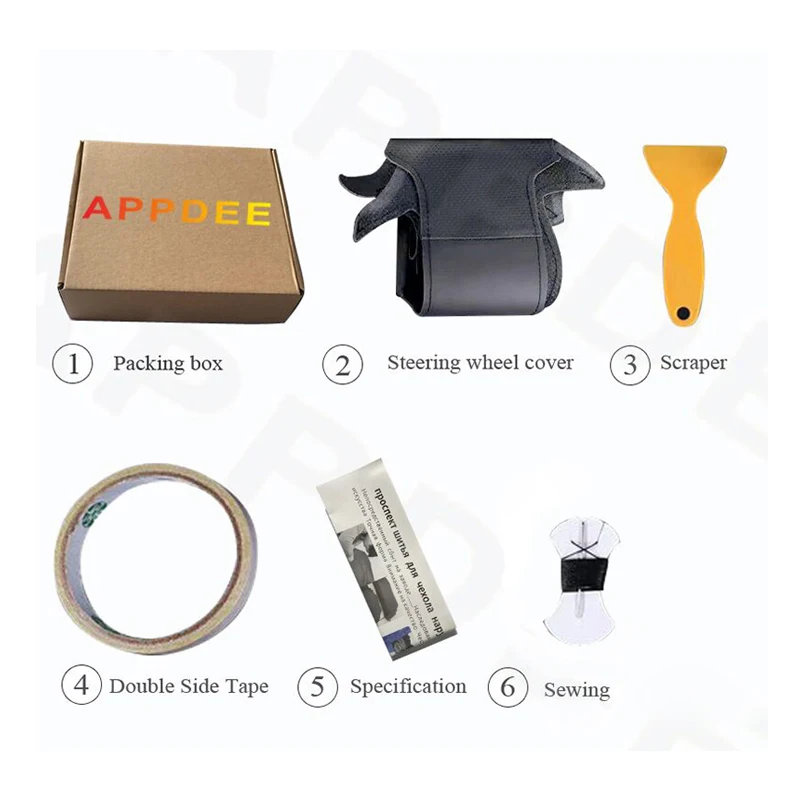 Чехол на руль автомобиля APPDEE, черная кожаная прошитая вручную дл...