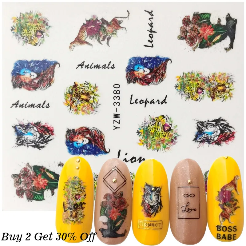 2022 новые наклейки для ногтей, леопардовые рисунки льва, смешанные...