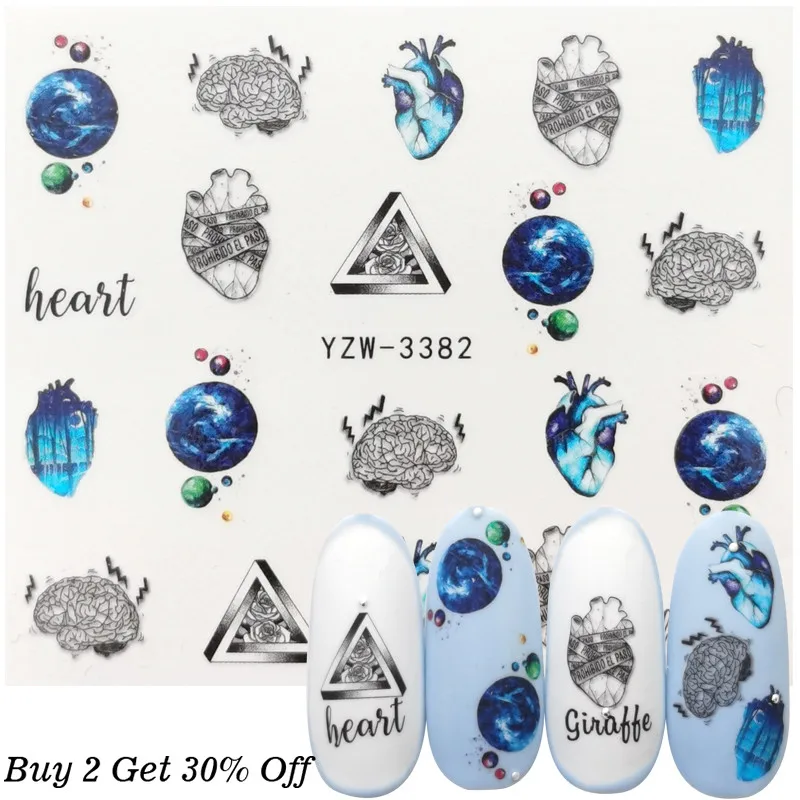 2022 новый дизайн креативные наклейки для ногтей планет мозга водны...