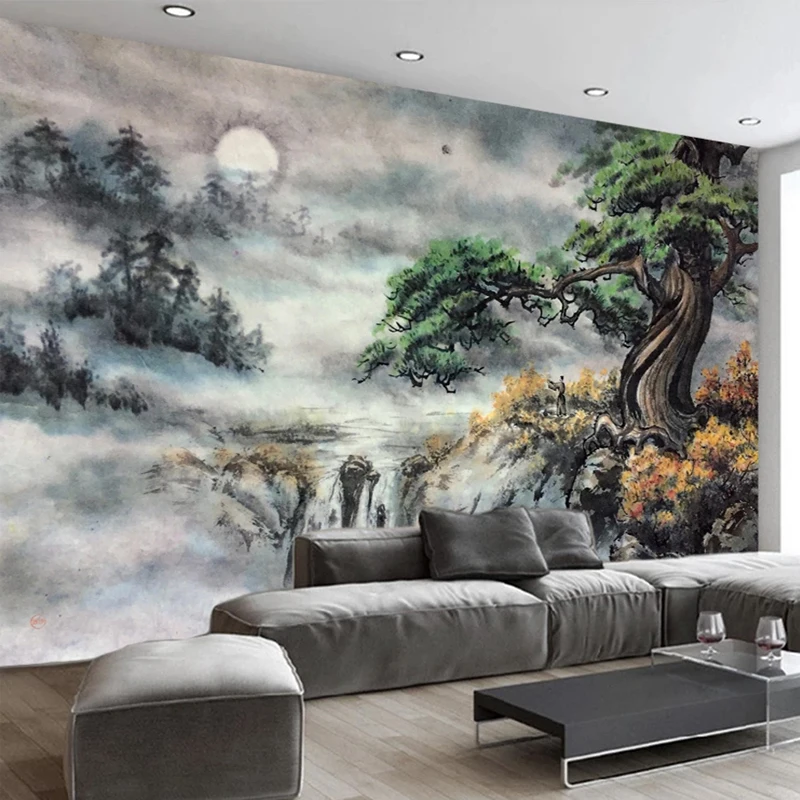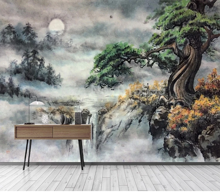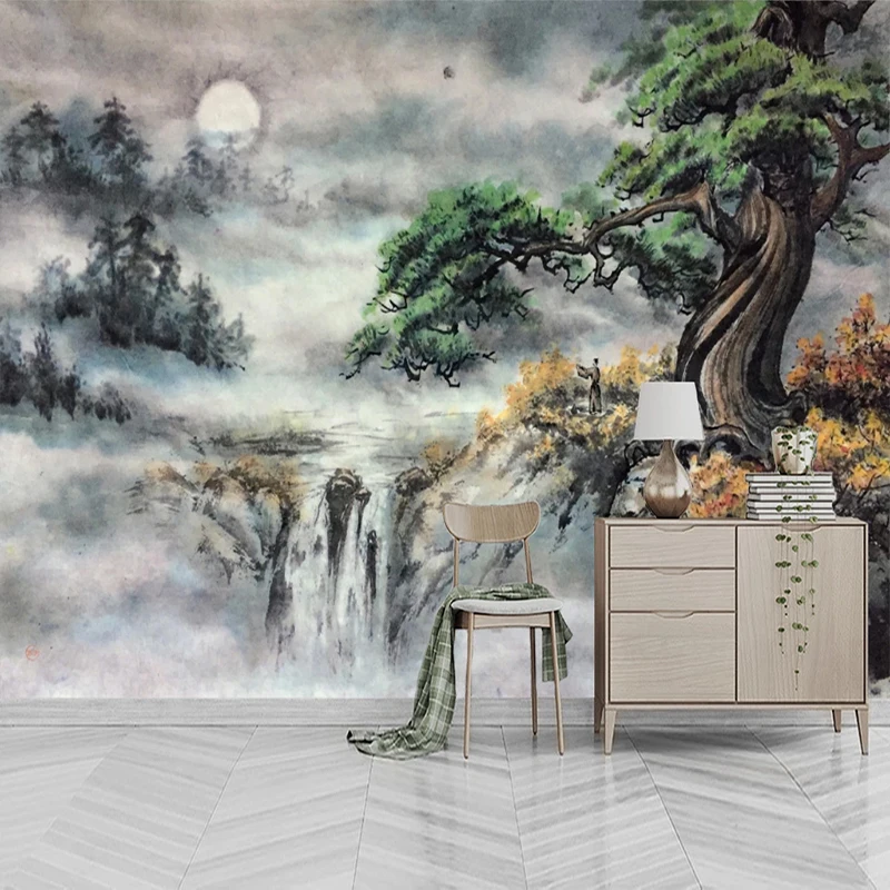 Пользовательские 3D фотообои чернильные горы вода пейзаж масляная живопись спальня гостиная диван ТВ фон Настенная роспись домашний декор