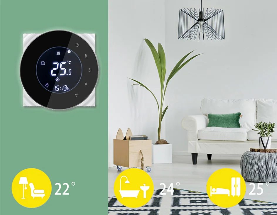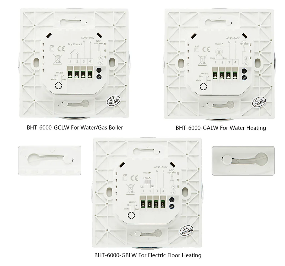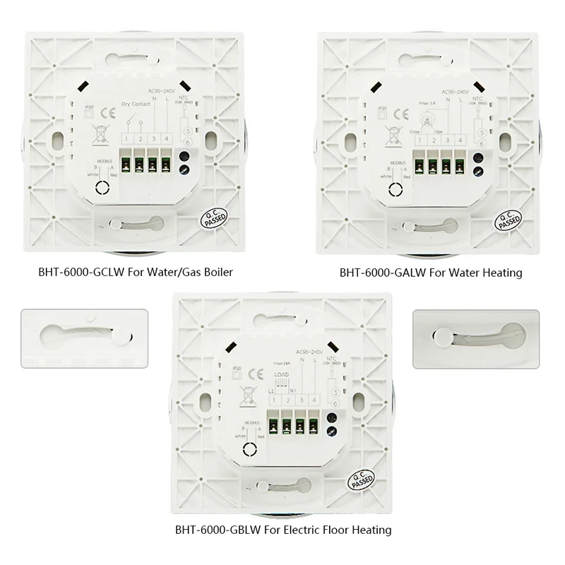 Умный сенсорный Wi-Fi термостат с подсветкой ЖК-экрана, водонагреватель, Электрический Напольный Подогрев, водяной газовый котел, регулятор температуры Alexa Google Home Примечание: Модель: BHT-6000-GA/BHT-002-GB/BHT-002-GC не включает функцию Wi-Fi. Модель: BHT-6000-GALW/BHT-002-GBLW/BHT-002-GCLW/включает функцию Wi-Fi. Модель: BHT-6000-GALZ/BHT-002-GBLZ/BHT-002-GCLZ/включает функцию ZigBee, должна работать сКонцентратор ZigBee Датчик не входит в комплект GA/GC. При необходимости также выберите датчик. Определение модели: [BHT-6000-GA]:Водонагреватель 3A [BHT-6000-GB]:Электрический Подогрев пола 16А [BHT-6000-GC]:Бойлер для воды/газа 3A [BHT-6000-GALW]:Нагрев воды Wifi голосовой контроль 3A [BHT-6000-GBLW]:Электрический напольный Отопление Wifi Голосовое управление 16A [BHT-6000-GCLW]:Водяной/Газовый Бойлер Wifi Голосовое управление 3A [BHT-6000-GALZ]:Водяной нагрев ZigBee Voice Contorl 3A, работает с Zigbee Hub [BHT-6000-GBLZ]:Электрический Подогрев пола ZigBee Голосовое управление 16А, работа с Zigbee Hub [BHT-6000-GCLZ]:Водяной/Газовый Бойлер ZigBee с голосовым управлением 3A, работает с Zigbee Hub