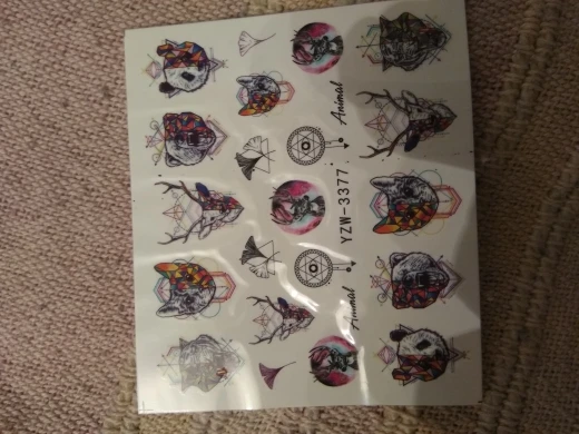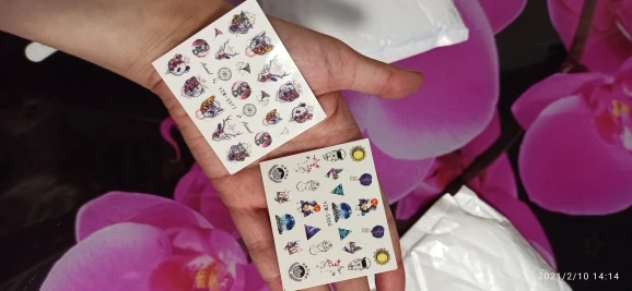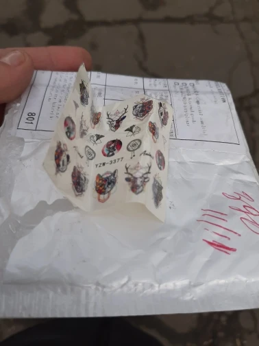Заказ приехал недели за 3. Наклейки выглядят симпатично, пришли в маленьком конвертике из пупырки, ничего не помялось. В маникюре пока не пробовала. Товар рекомендую) с продавцом не общалась.
