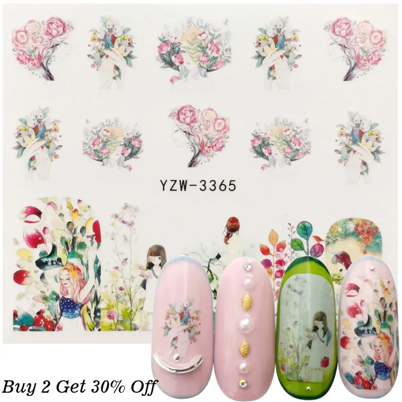 Водные Переводные картинки для ногтей с животными и геометрическими...