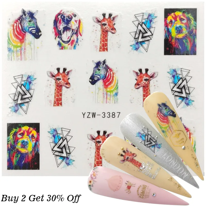 Переводные наклейки для ногтей с животными, геометрическими узорами...