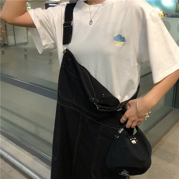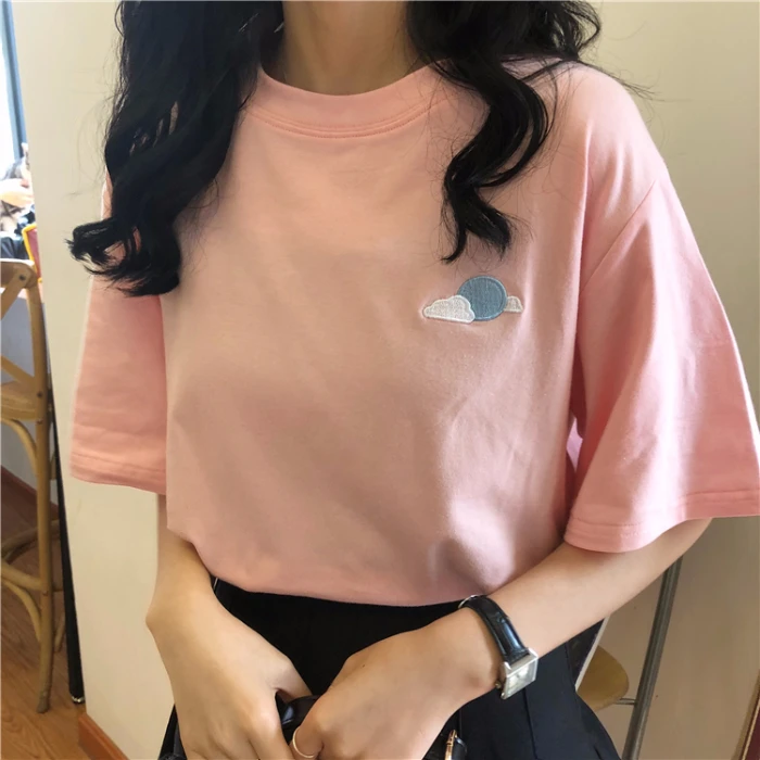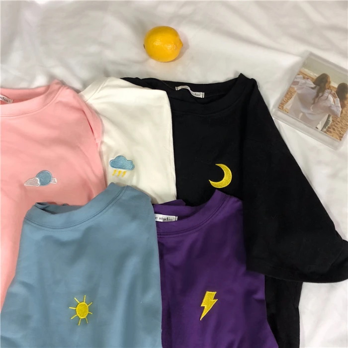 Женские футболки, топы в японском стиле, Kawaii Ulzzang, Повседневная Свободная мультяшная погоду, женская одежда в Корейском стиле Харадзюку