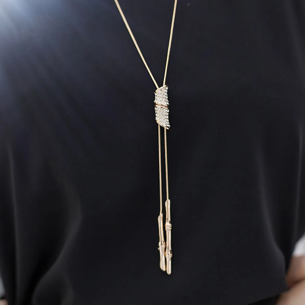 Длина 88 см, модные стразы, бамбуковые ожерелья с кулоном, женская ...