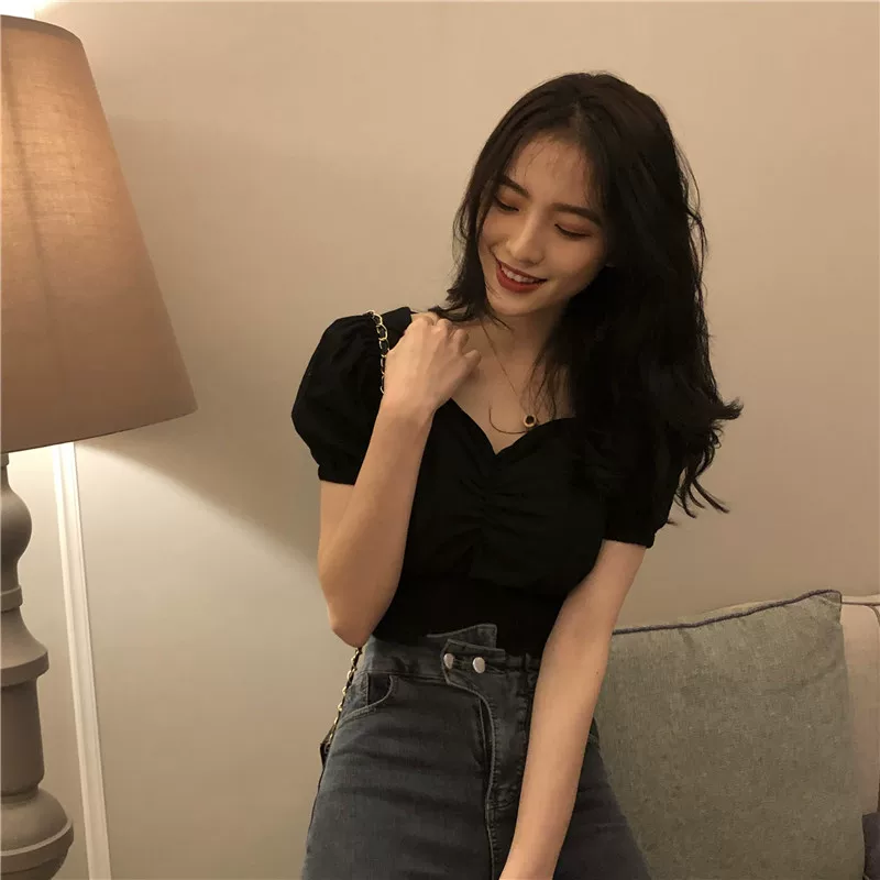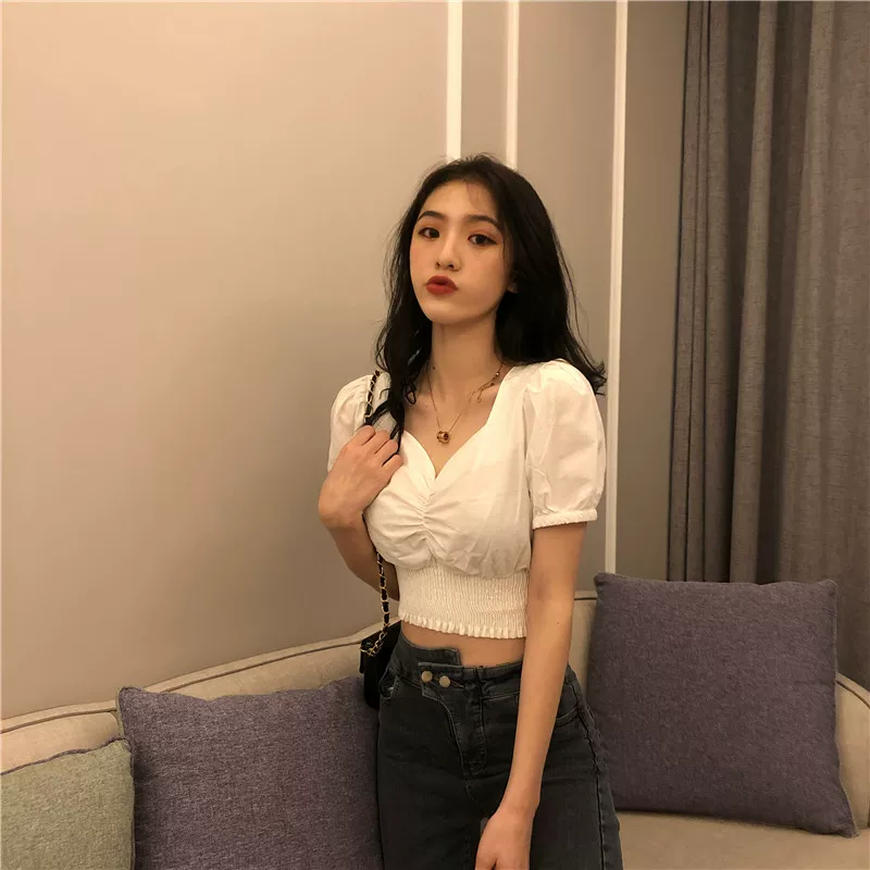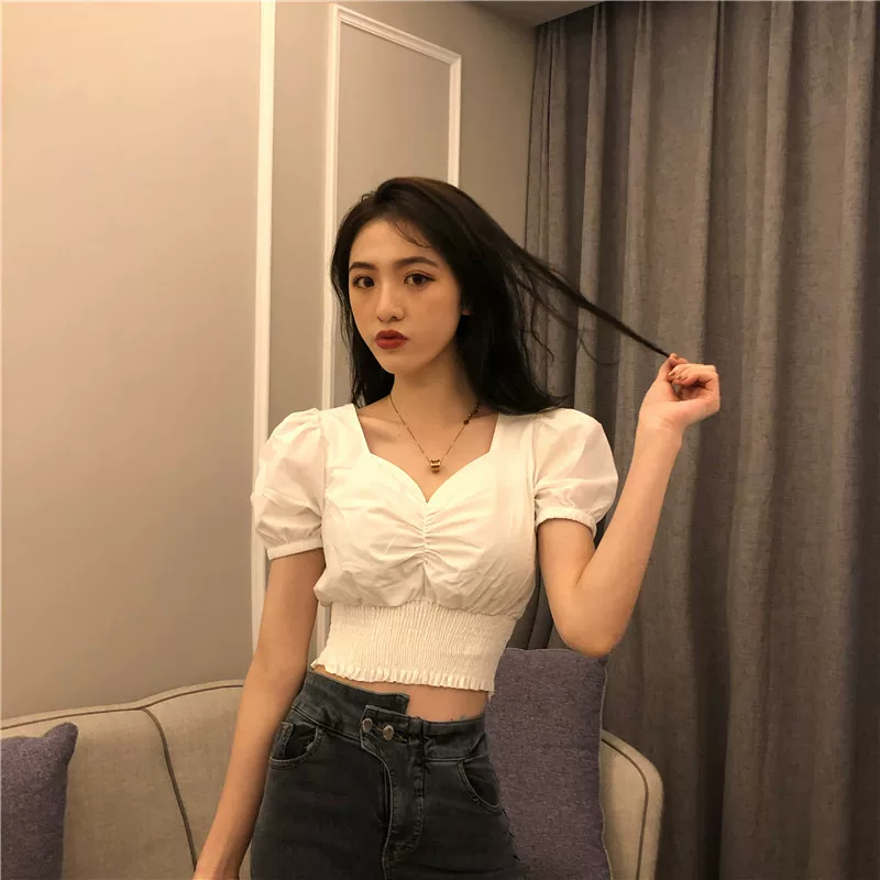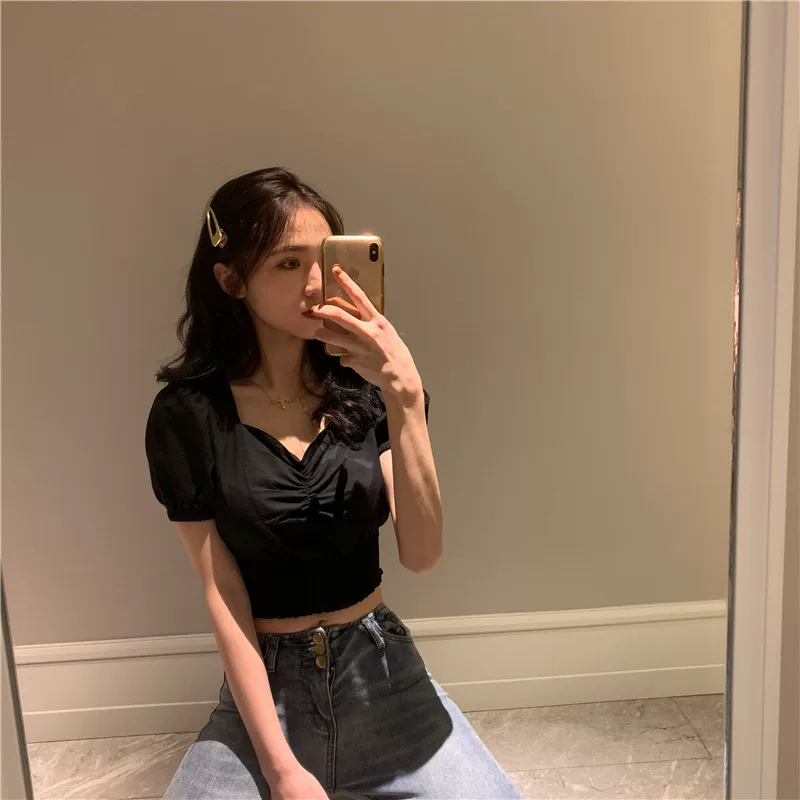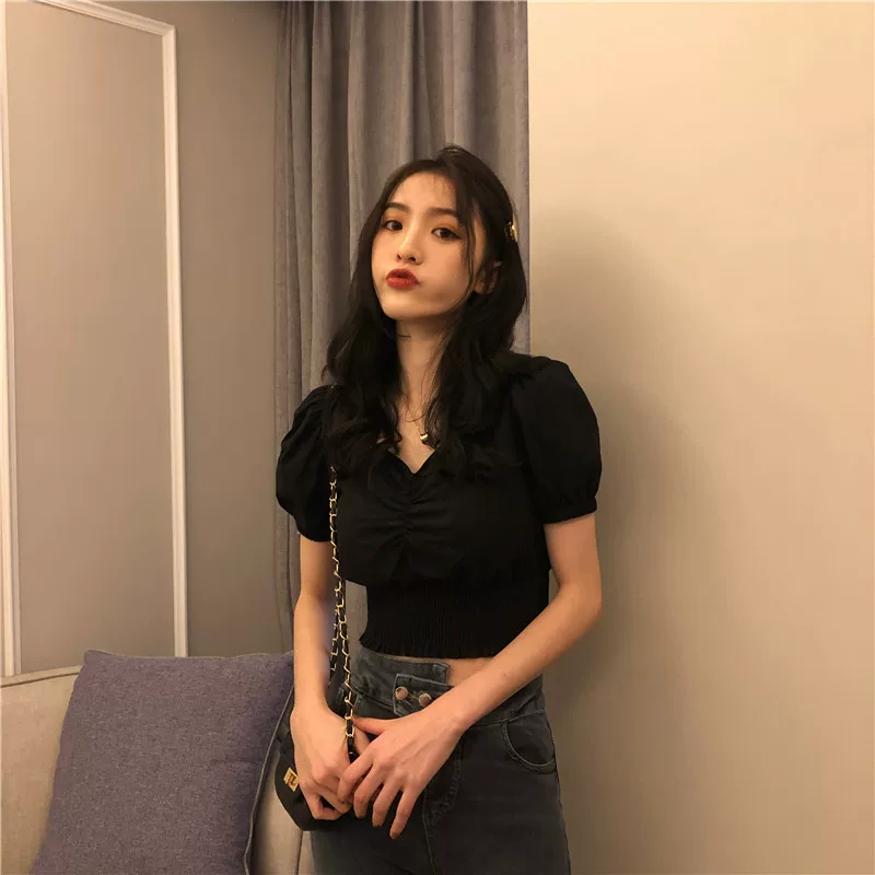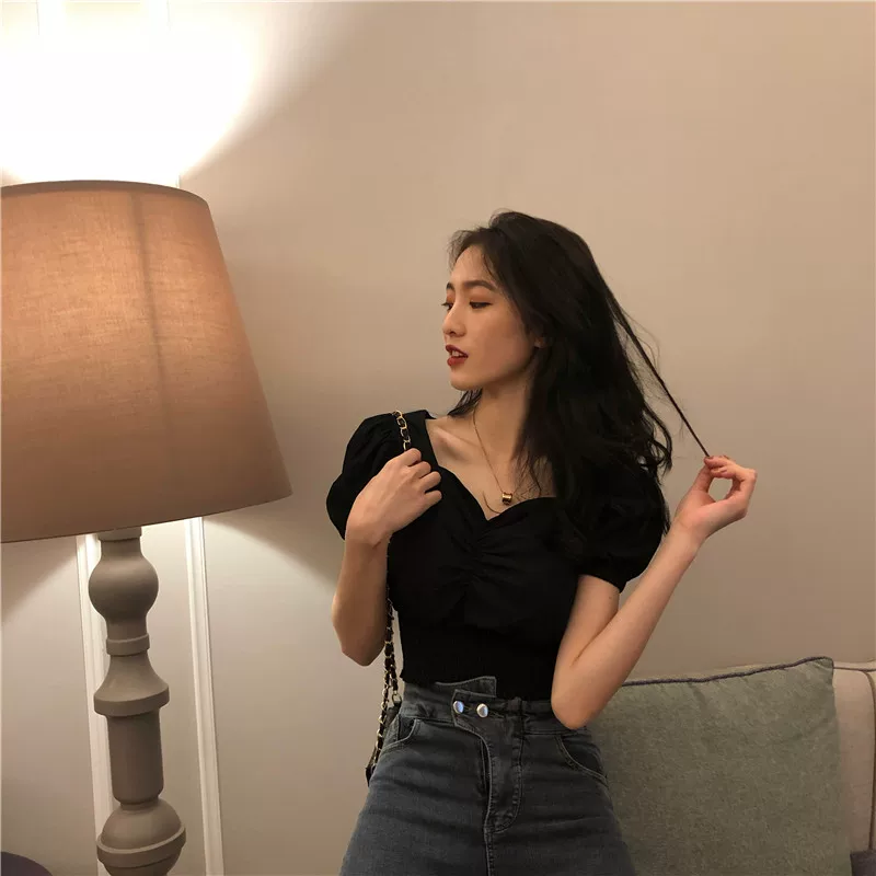 Женская футболка в стиле ретро, с пышными рукавами, в Корейском стиле, в стиле Харадзюку, 2021
