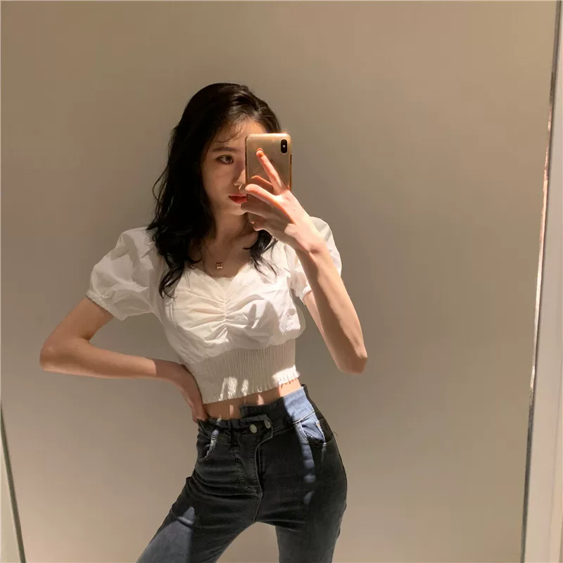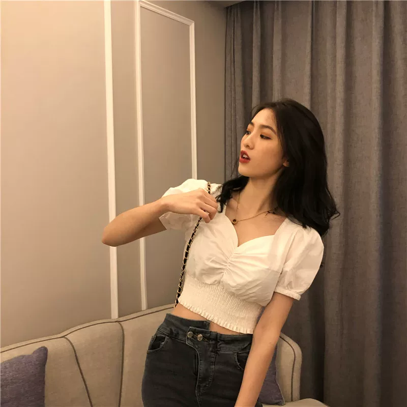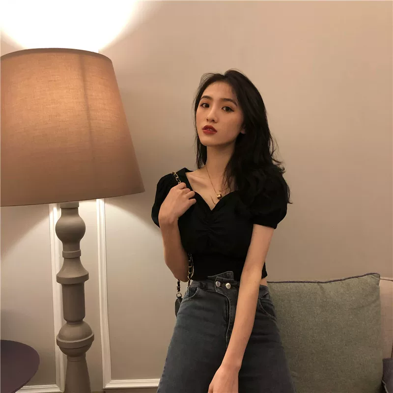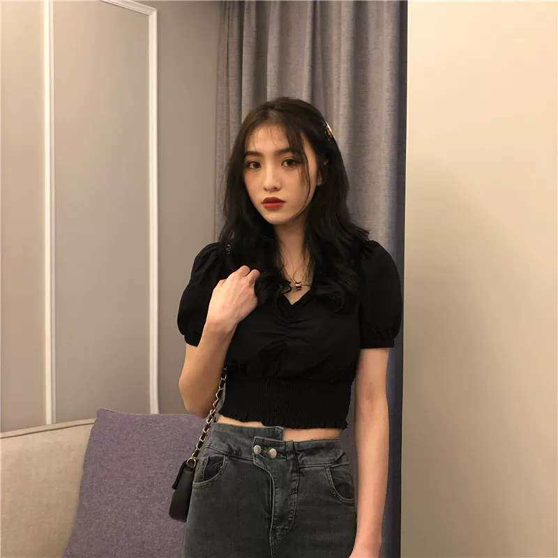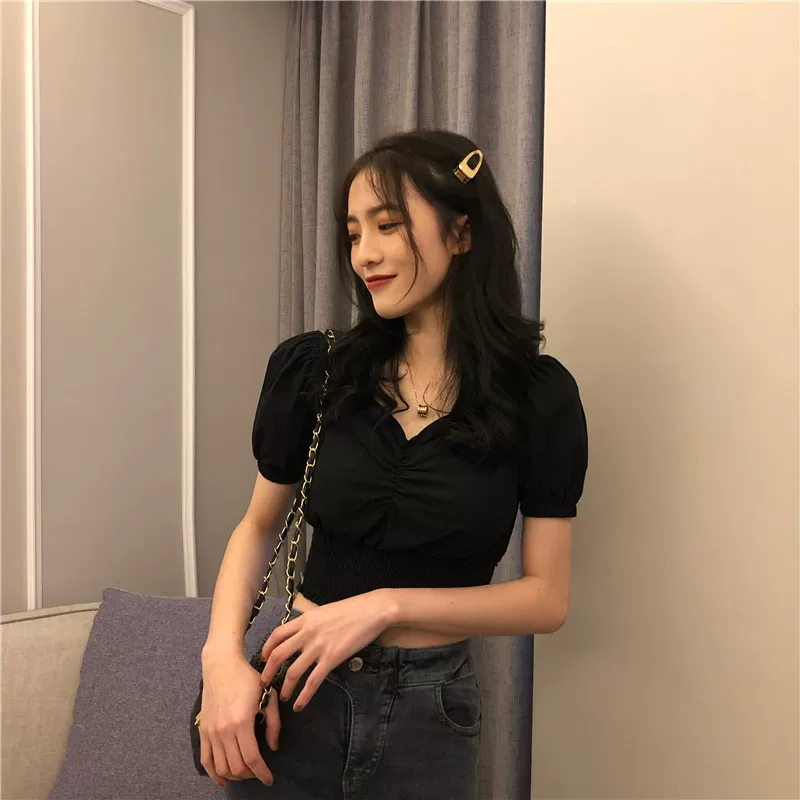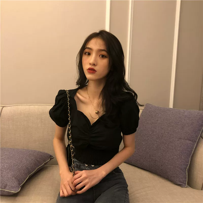 Женская футболка в стиле ретро, с пышными рукавами, в Корейском стиле, в стиле Харадзюку, 2021