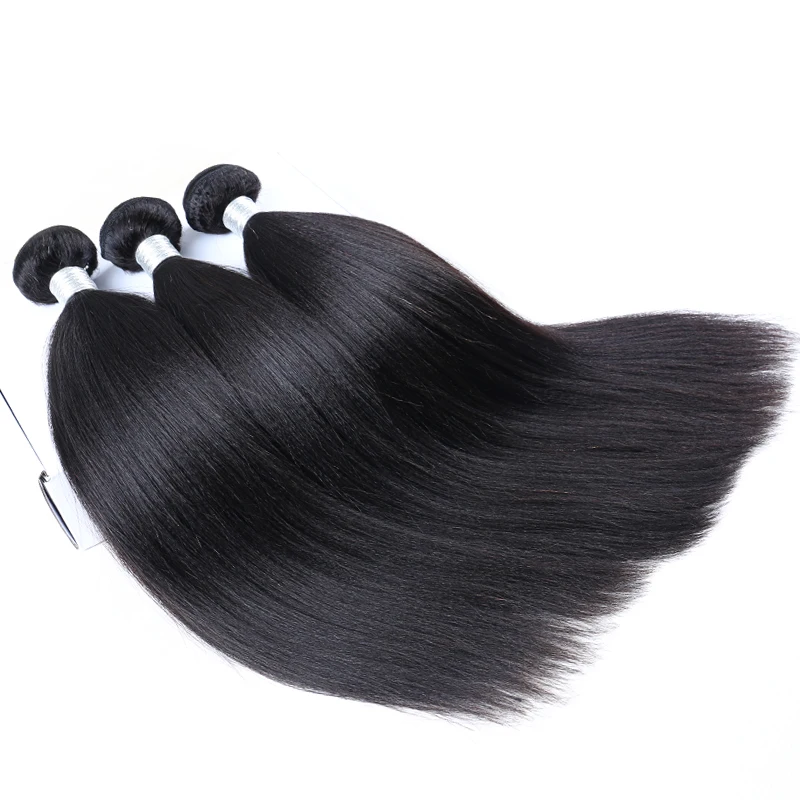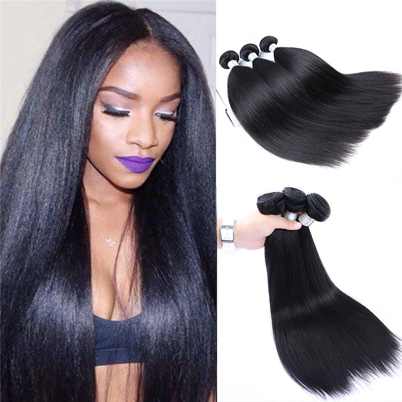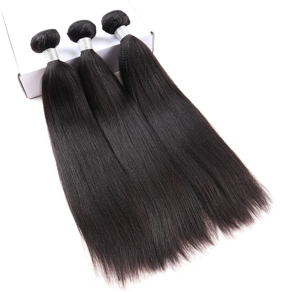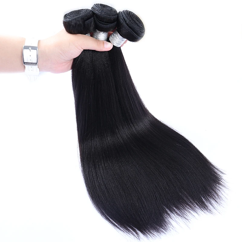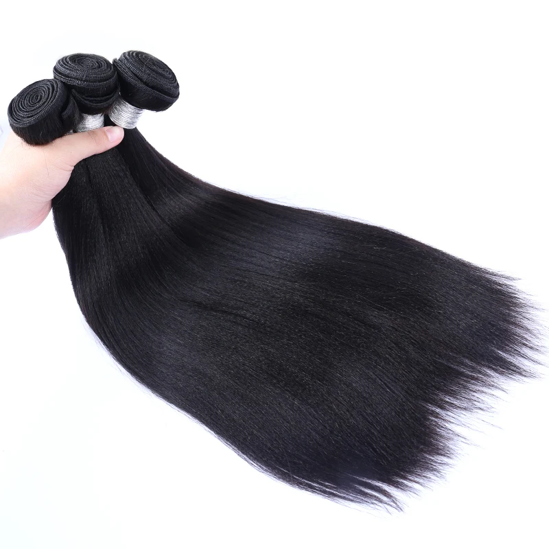 Человеческие волосы Yaki, бразильские пучки волос с застежкой, 3, 4, прямые волосы для наращивания