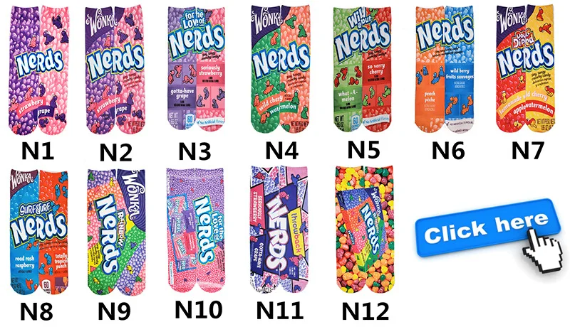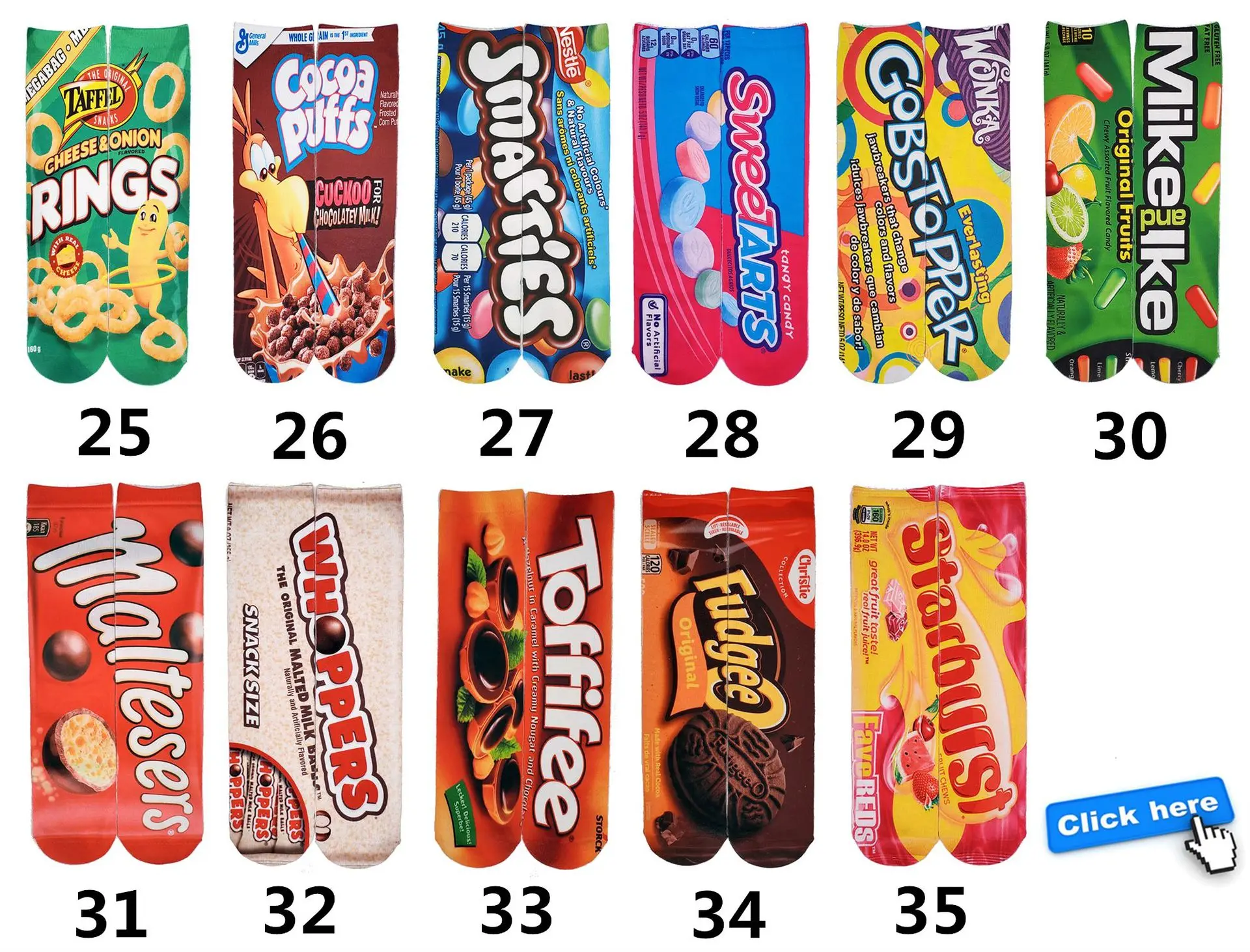 Носки унисекс, упаковочный мешок с принтом картофельных чипсов, шоколадных фруктов, конфет, хлопковые носки, мужские и женские носки Harajuku