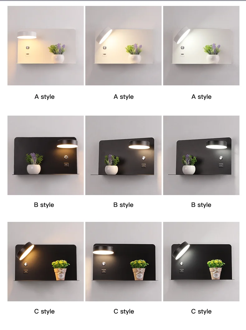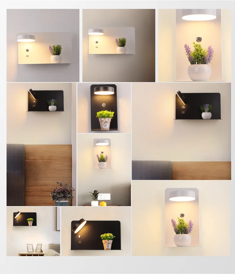 Светодиодные Настенные светильники с выключателем и интерфейсом USB, модный светильник белого и черного цветов, светильник для коридора, прохода, художественный светильник, светильник