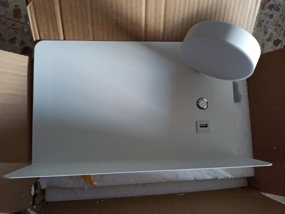Неплохой светильник с полочкой. Свет мягкий белый. Телефон заряжает. Покупкой доволен.