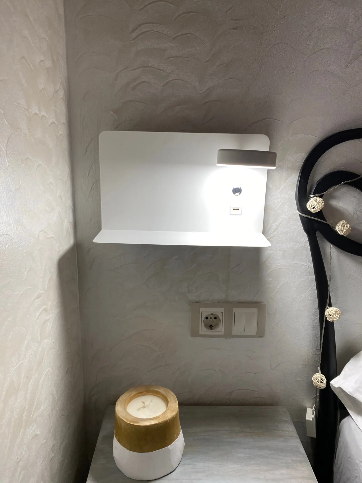 Именно то, что я ожидал. Небольшая полка для зарядки вашего мобильного телефона и свет для перед сном и когда вы просыпаетесь.