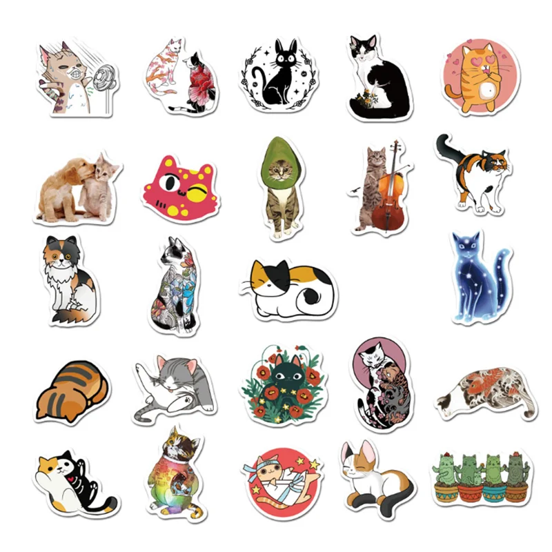 50 шт. милые Мультяшные наклейки Kawaii Эстетическая Savage Cat, на...