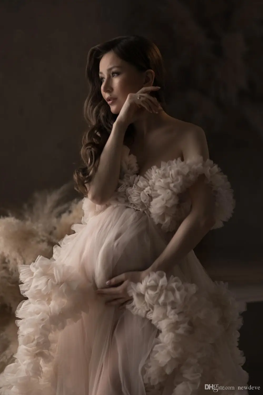 Длинное платье для беременных, Тюлевое платье с оборками для фотосе...