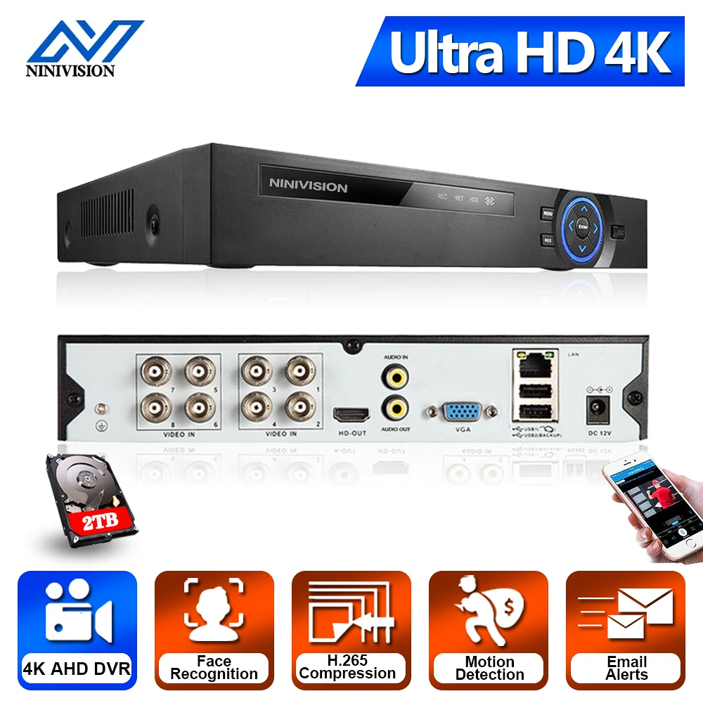 NINIVISION Обнаружение лица H.265 4CH 8CH 5MP AHD DVR гибридный видеорегистратор Поддержка 5MP 4MP 2MP AHD IP камера CCTV домашняя система безопасности