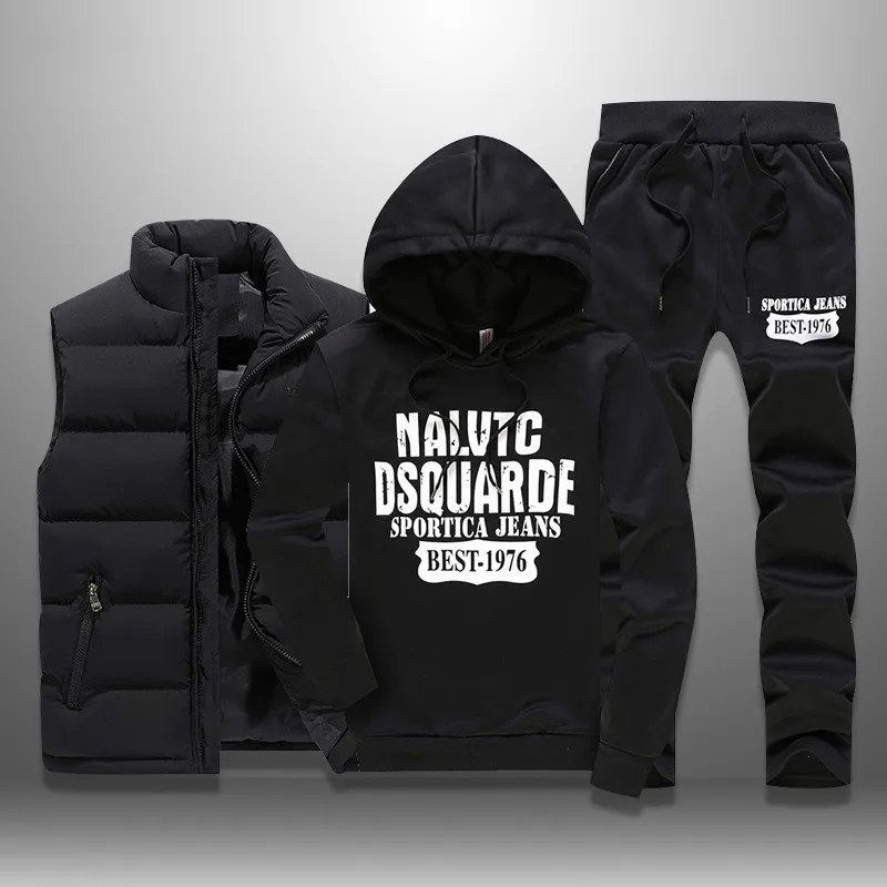Мужские зимние спортивные костюмы, повседневная спортивная одежда, свитшоты, мужской комплект из 3 предметов, теплый жилет, спортивные штаны, толстовка с буквенным принтом, плюс размер 5XL