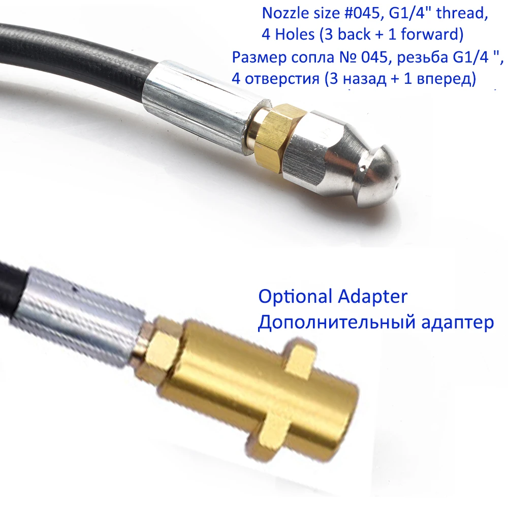 1/4 "* 20 м * 160 бар/2320PSI канализационный шланг для очистки воды со съемный наконечник и дополнительный адаптер для большинства моек высокого давления