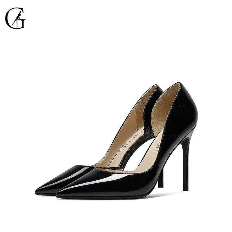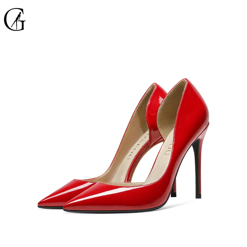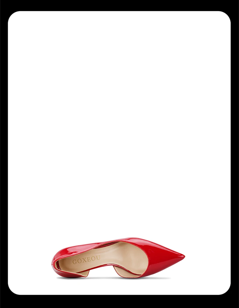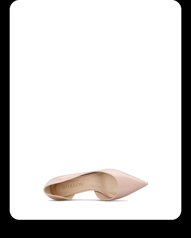GOXEOUженские туфли-лодочки лакированные телесные черные красные белые туфли D'orsay с острым носком на высоком каблуке для вечеринки, модные женские туфли 32-46