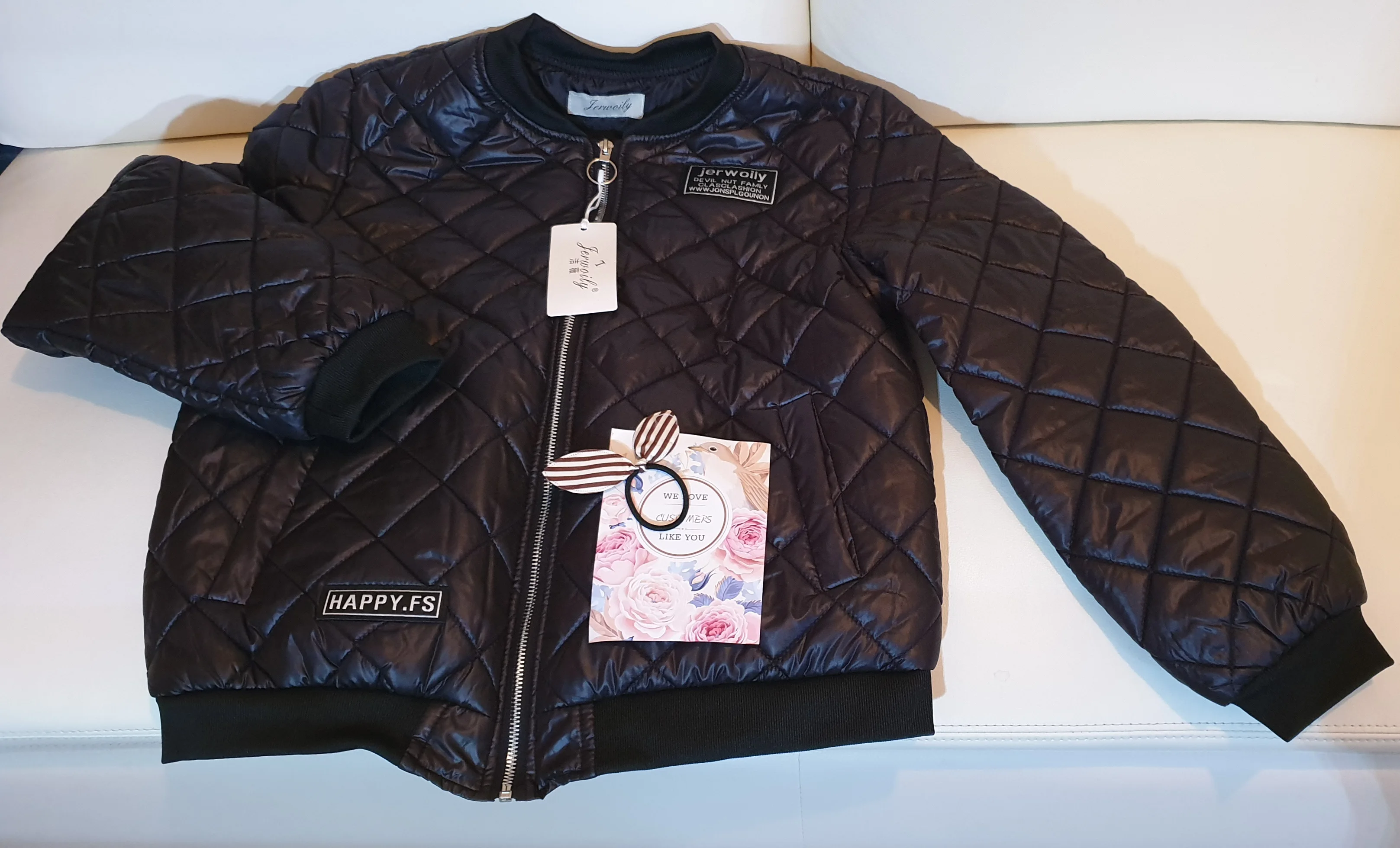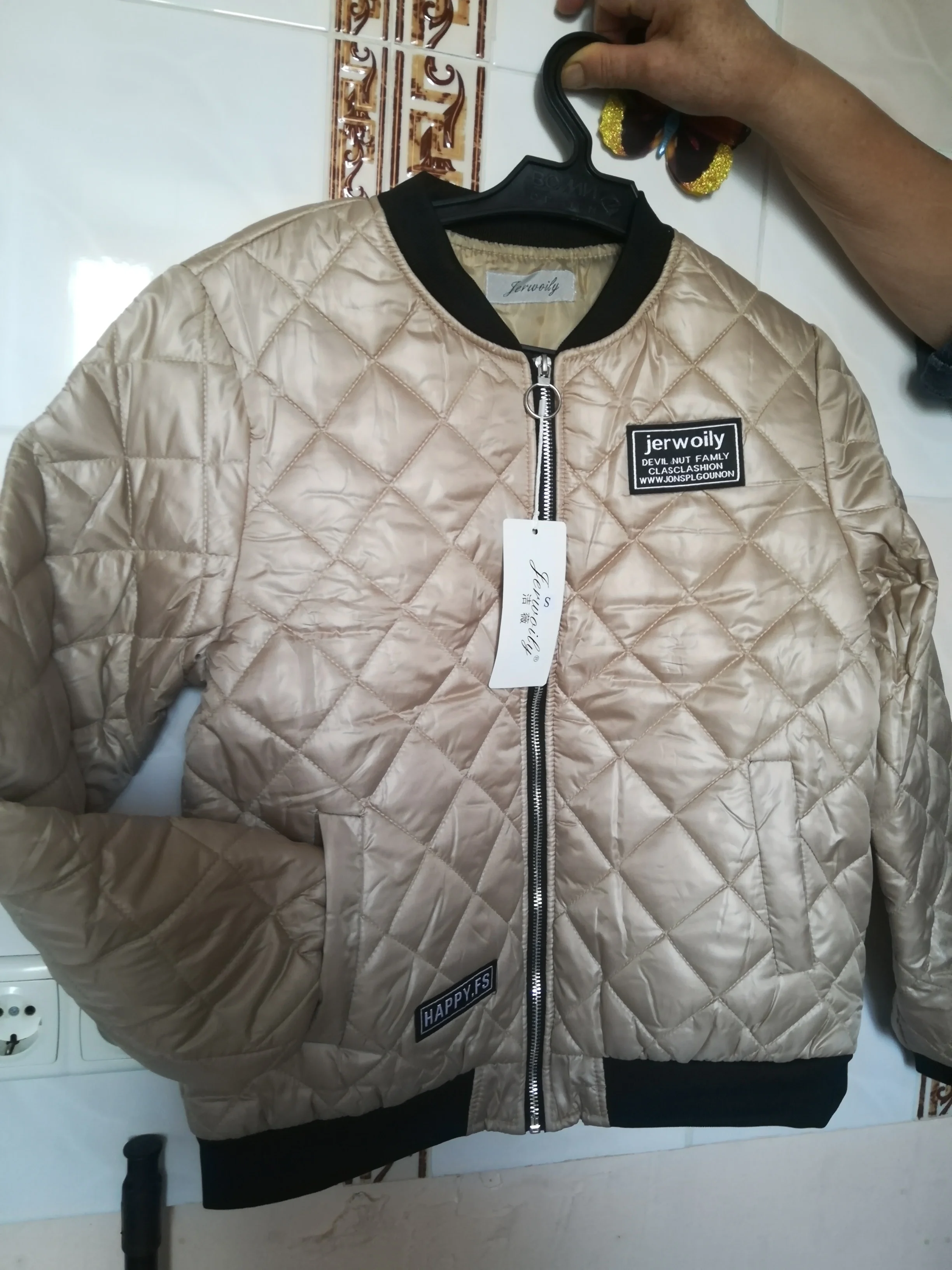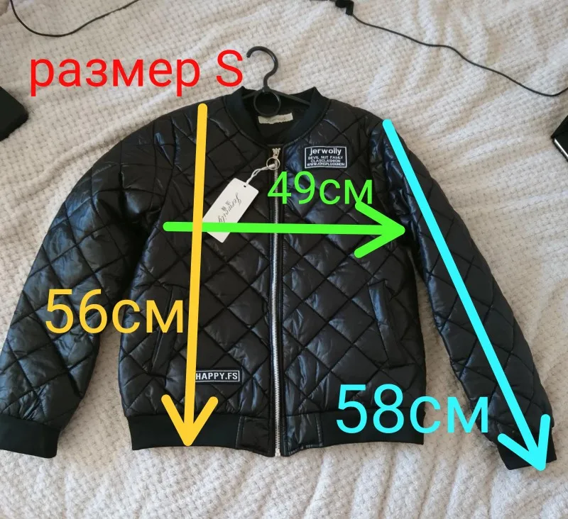 Я приятно удивлена, куртка смотрится прилично, пошив аккуратный. Давно искала куртку на резинке, чтобы ничего лишнего.Пришла за 2 недели в Калининград. Осень тёплая, ещё успею поносить. Я очень довольна покупкой, всем рекомендую. На российский 46 - 48,рост 164 - L села идеально.