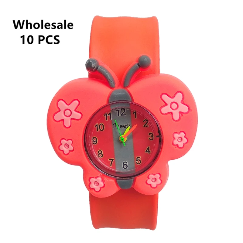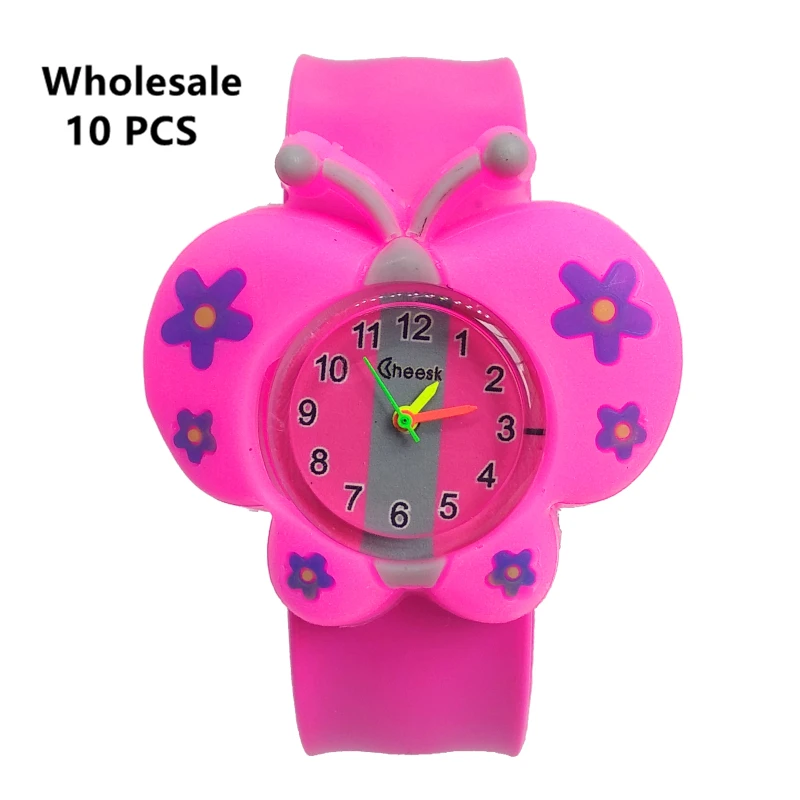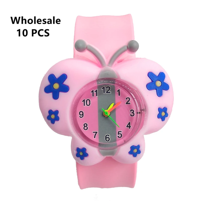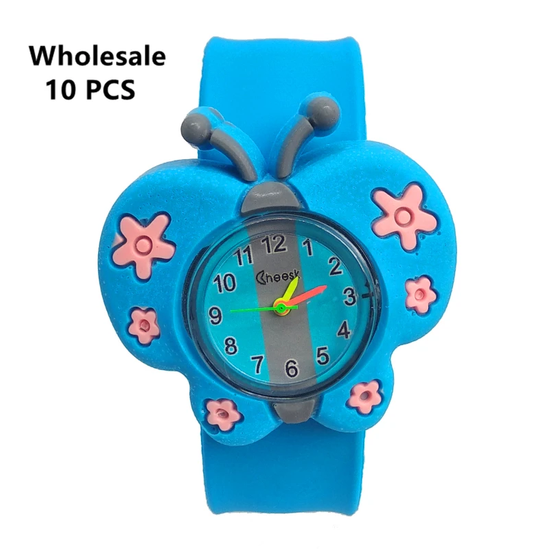 Детские Водонепроницаемые кварцевые часы с 3d-бабочками и силиконовым ремешком