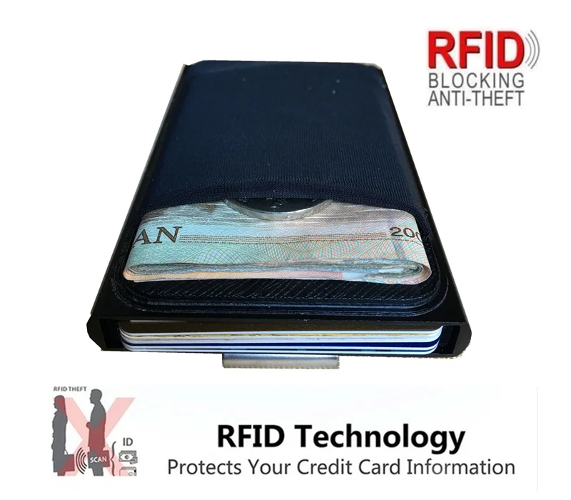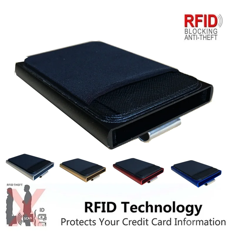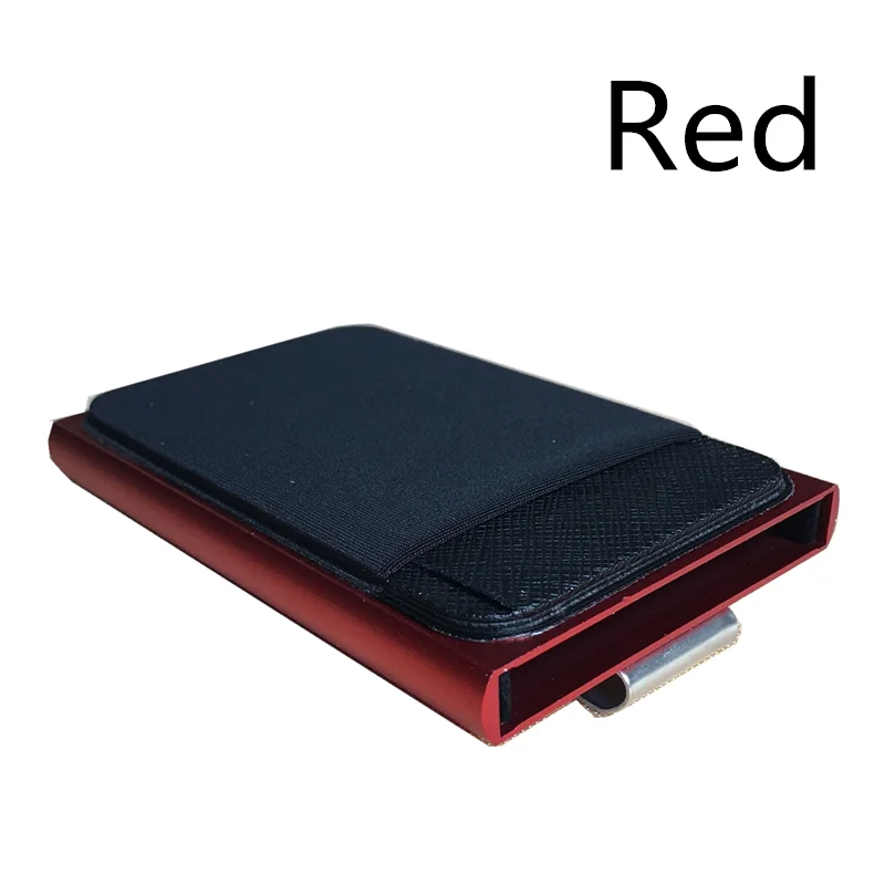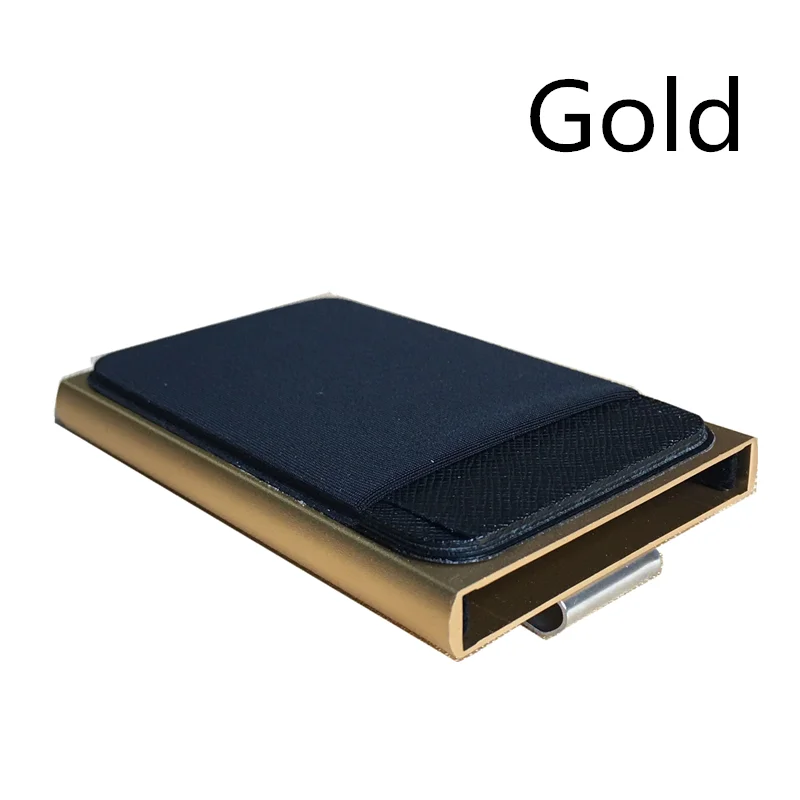 Алюминиевый кошелек. С зажимом. С эластичным задним карманом ID держатель кредитной карты, RFID мини тонкий кошелек для монет, автоматическая всплывающая коробка для банковских карт