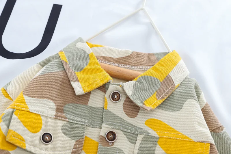 Комплект камуфляжной одежды для маленьких мальчиков, куртка с капюшоном и джинсы, комплект одежды для младенцев