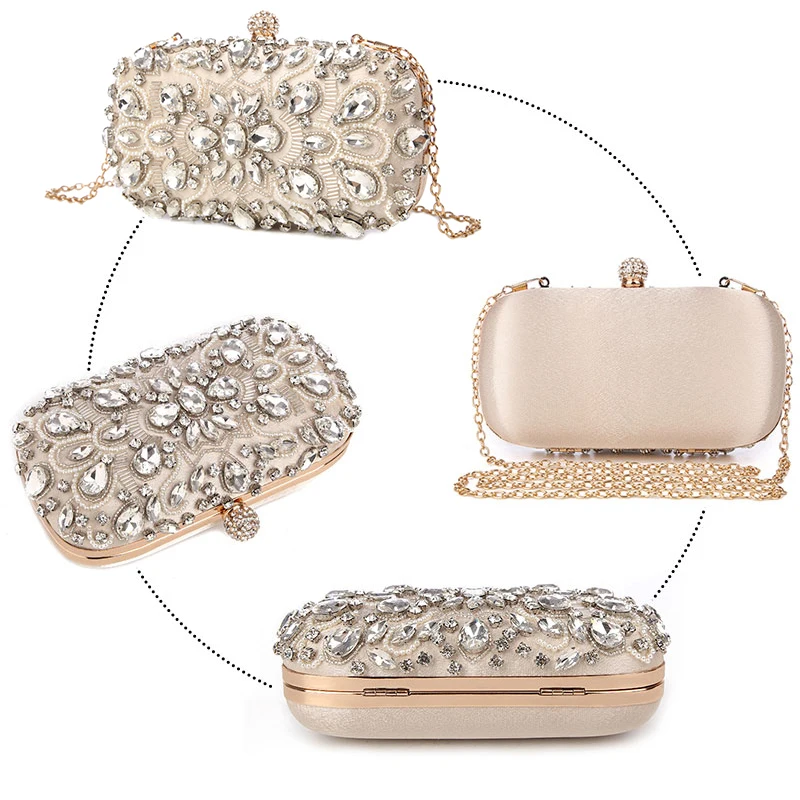 Женский вечерний клатч, кошелек для вечевечерние, роскошный свадебный клатч для невесты, изысканная дамская сумочка с кристаллами, кошелек абрикосового и серебряного цветов