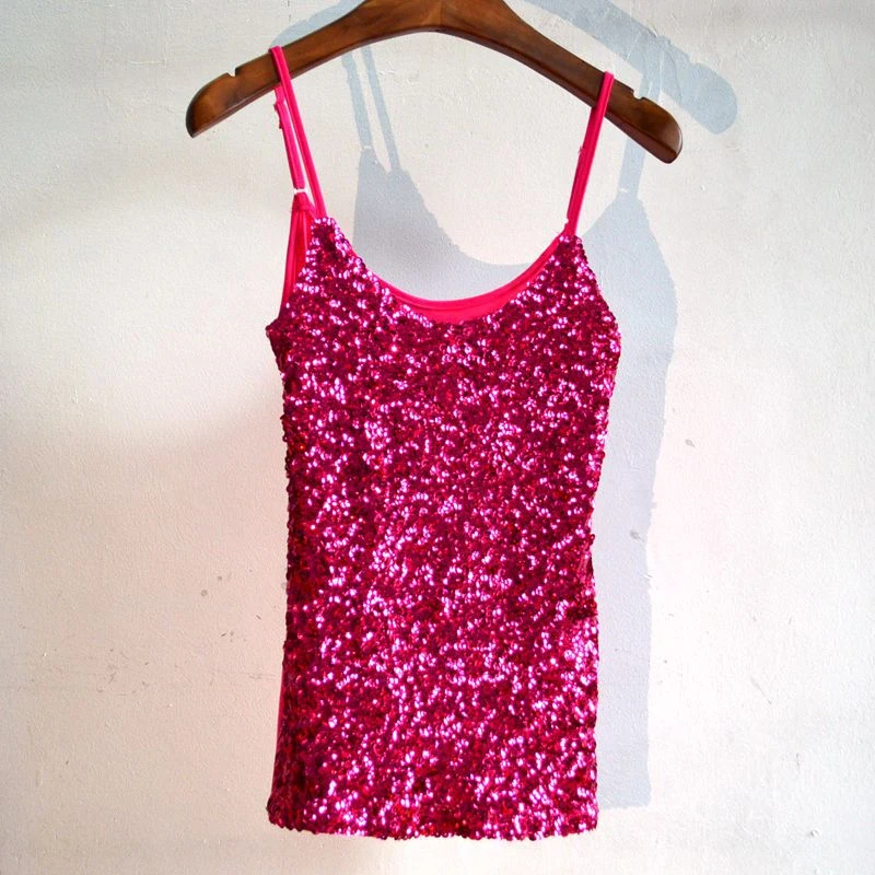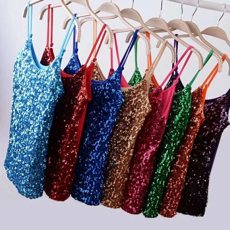 Майка женская блестящая на бретельках, пикантный Топ с блестками, одежда для вечеринок, жилет, Клубная одежда, ночная рубашка