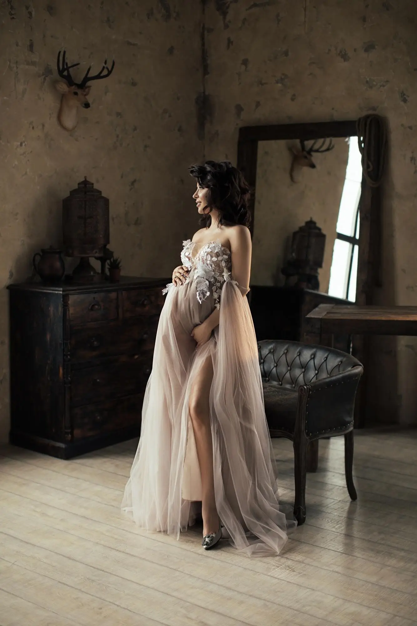Халат небесно-голубой для беременных, женское длинное фатиновое платье, одежда для сна для фотосессии, дня рождения, вечеривечерние, на заказ