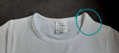 Эта футболка типичная "китайская" вещь. Сшито кривенько, особенно заметно в районе горловины, на фото обвела. Надпись слегка мутновата, незнаю заметно ли это по фото. Обозначения размера на футболке нет, заказывала 3-4. Ткань достаточно приятная мягкая, тянется хорошо, но синтетика, будет жарко в ней, на постоянную носку нет, сделать фото пару раз пойдет. Мой ребёнок ростом около 94 см и 13 кг веса, ему длинная футболка, по ширине нормально.