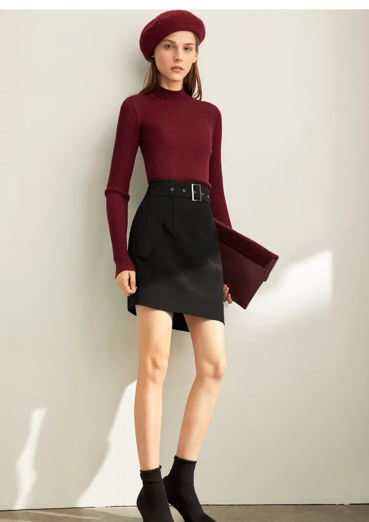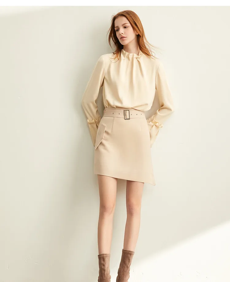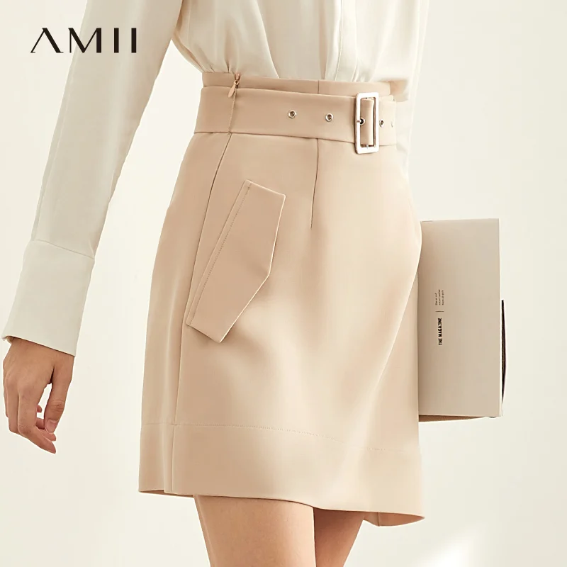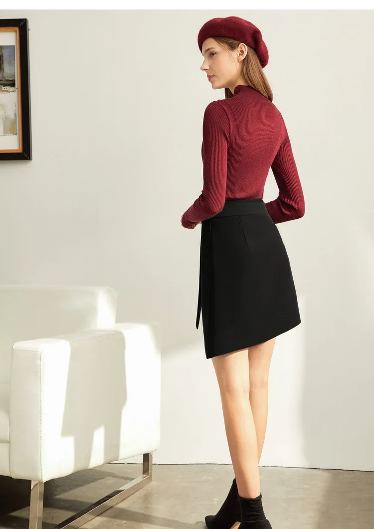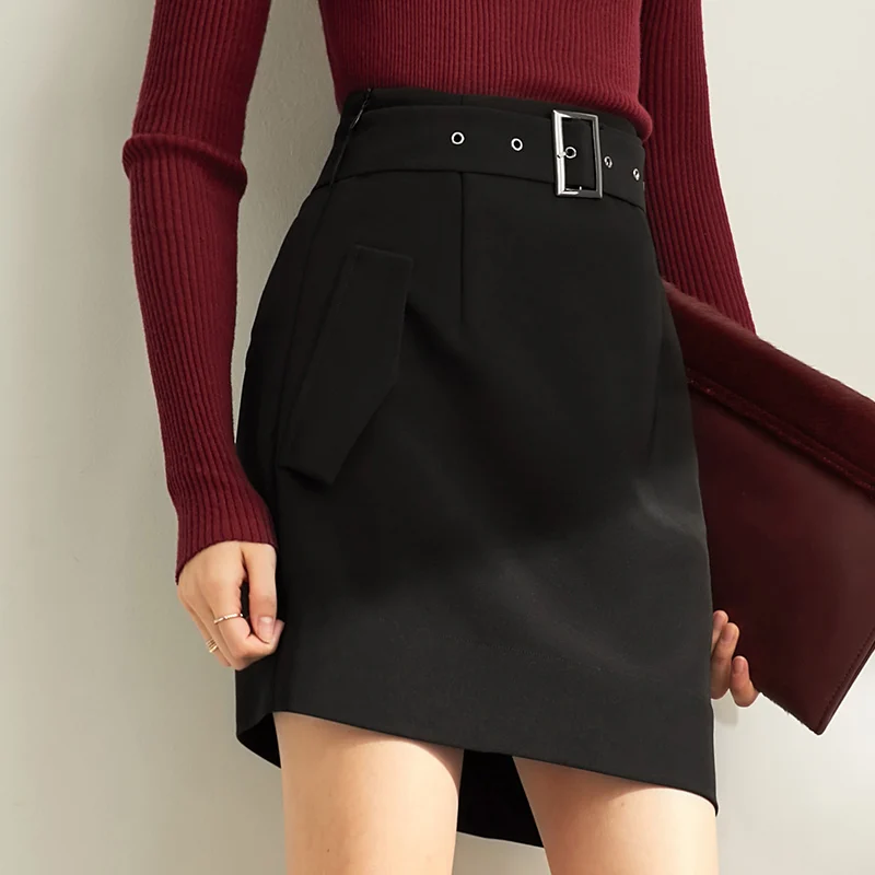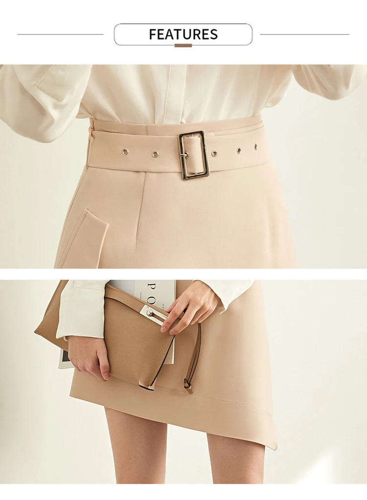 Мини-юбка Женская Асимметричная трапециевидная с высокой талией и поясом