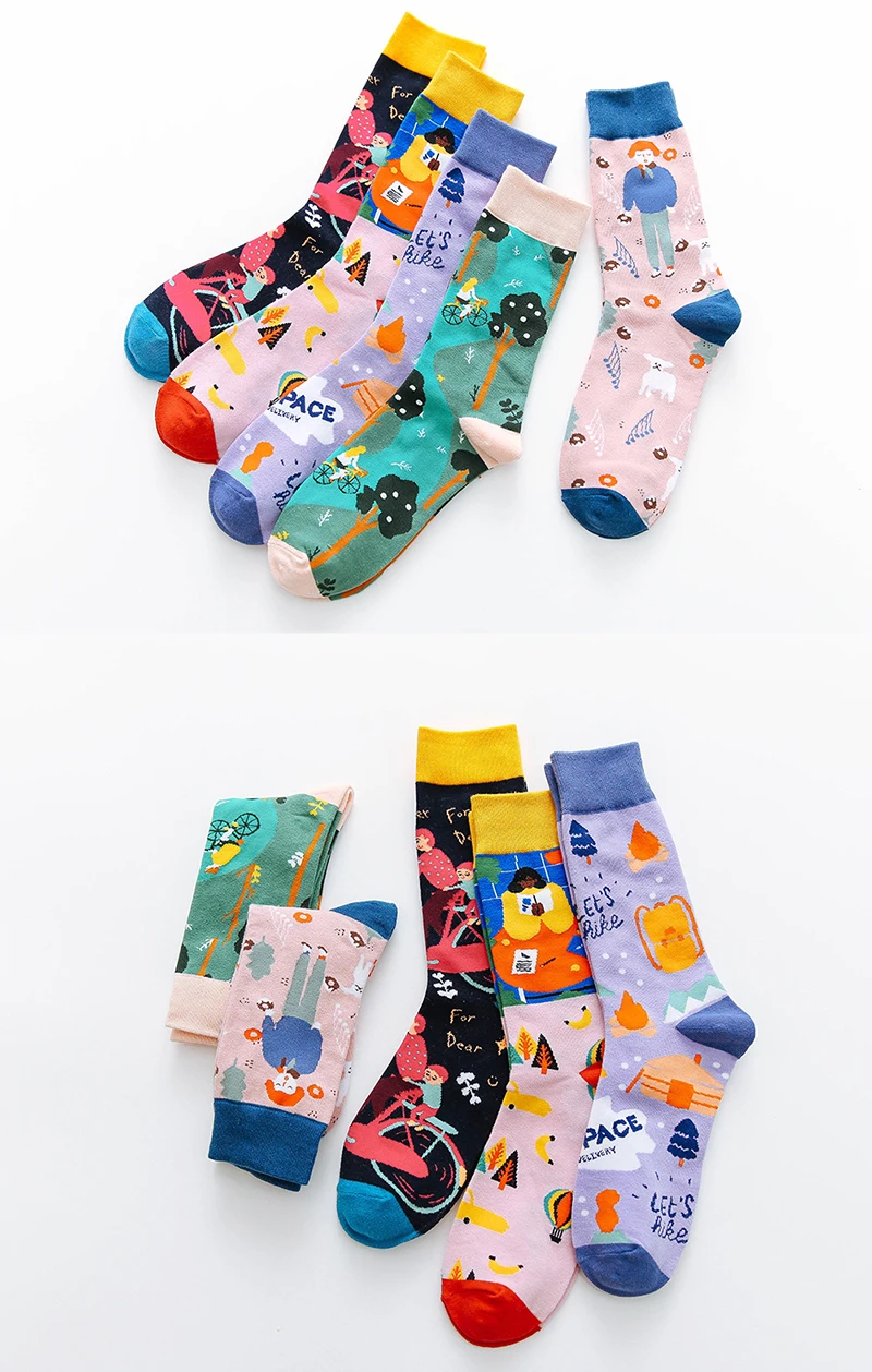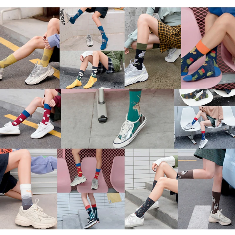 Женские хлопковые носки, женские носки для скейтборда, иллюстрация, художественный принт, творческие высококачественные смешные носки в стиле ins